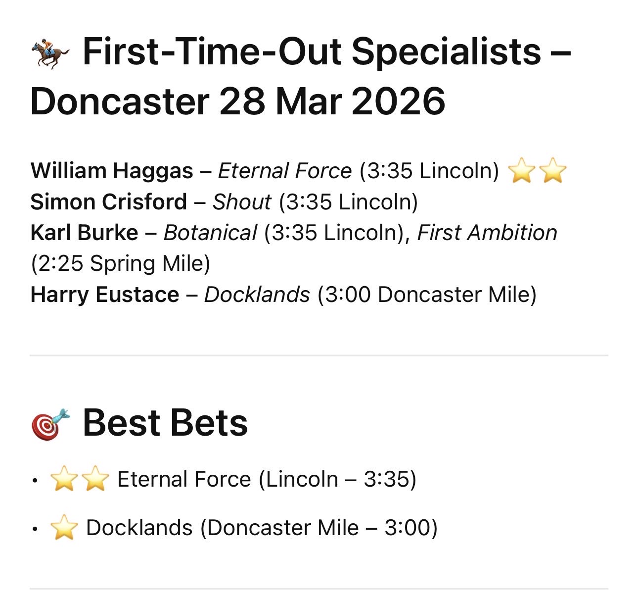 Some strong selections here long and short odds 💪