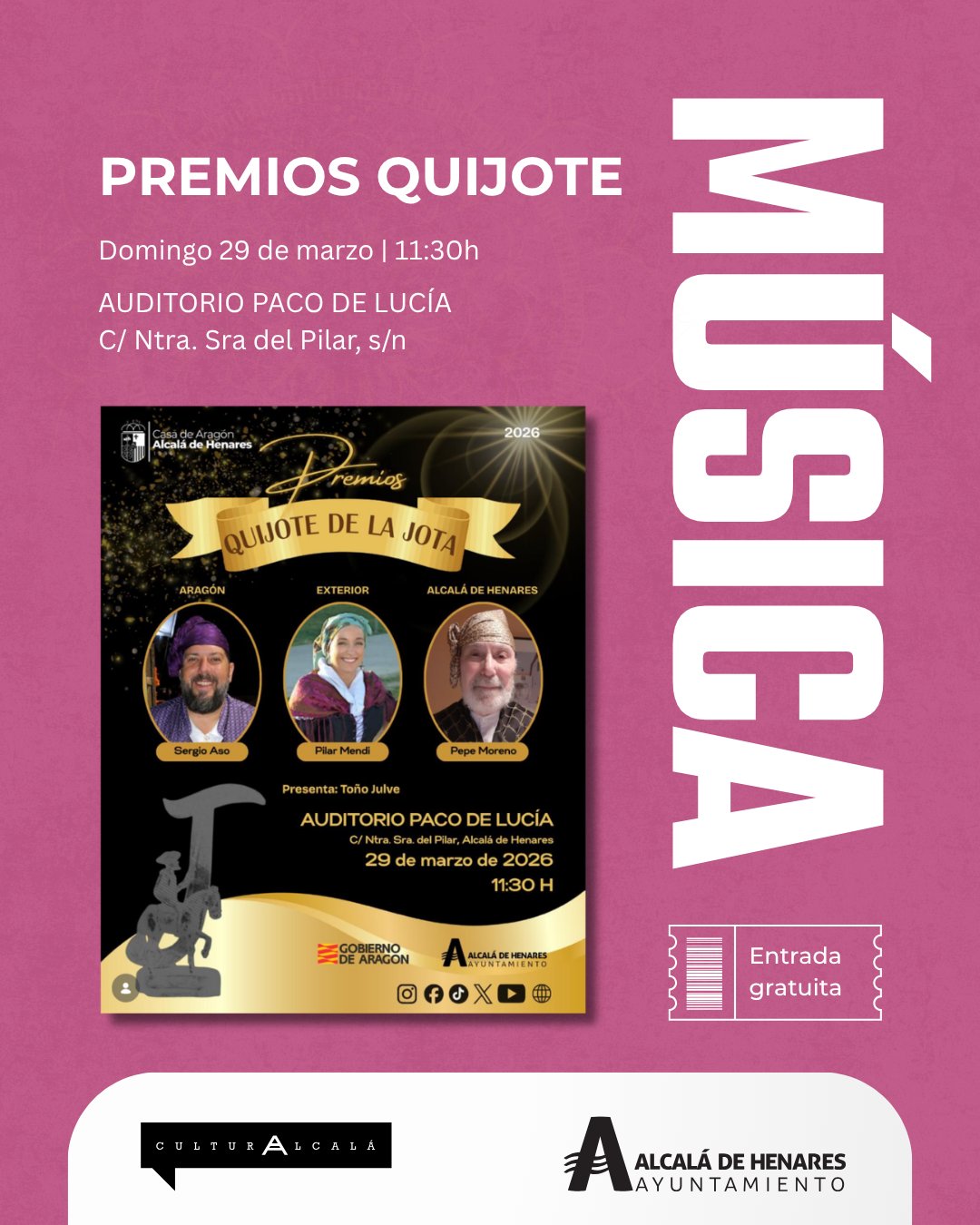 Llega una nueva edición de los Premios Quijote de la Jota, un reconocimiento a quienes mantienen viva esta tradición tan especial. Una mañana para celebrar el folclore, la música y nuestras raíces. ✨