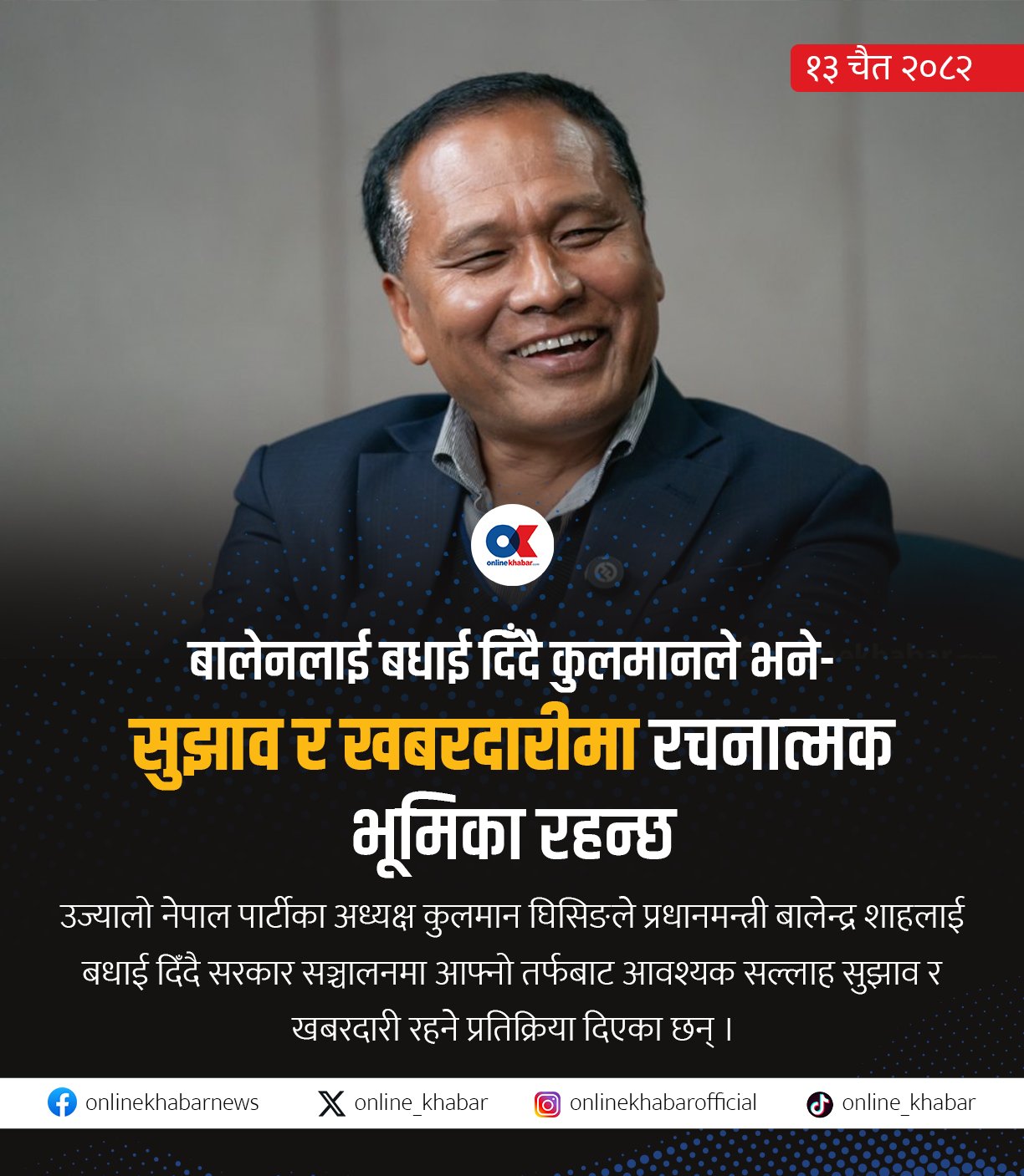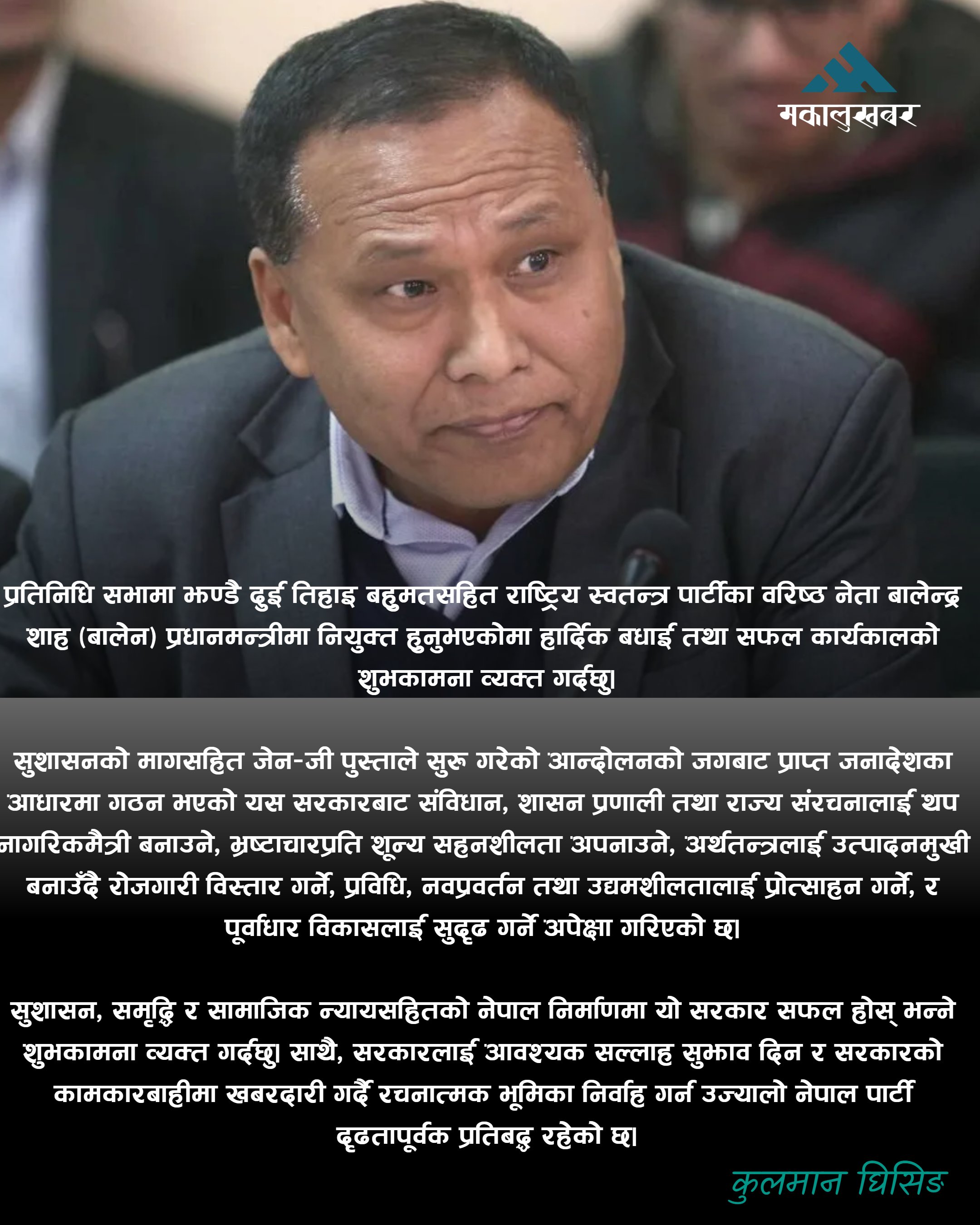 From ne.nepalaaja.comKulman Ghising announces street-led political strategy and nationwide expansion plan. Ujyaalo Nepal Party targets stronger presence in upcoming elections.