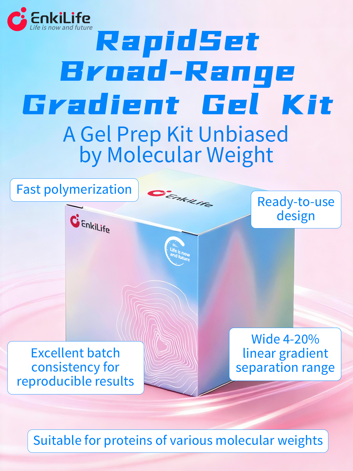 The new EnkiLife RapidSet Gradient Gel Kit delivers unbiased 4–20% separation in ready-to-use form. Fast, consistent, reproducible.