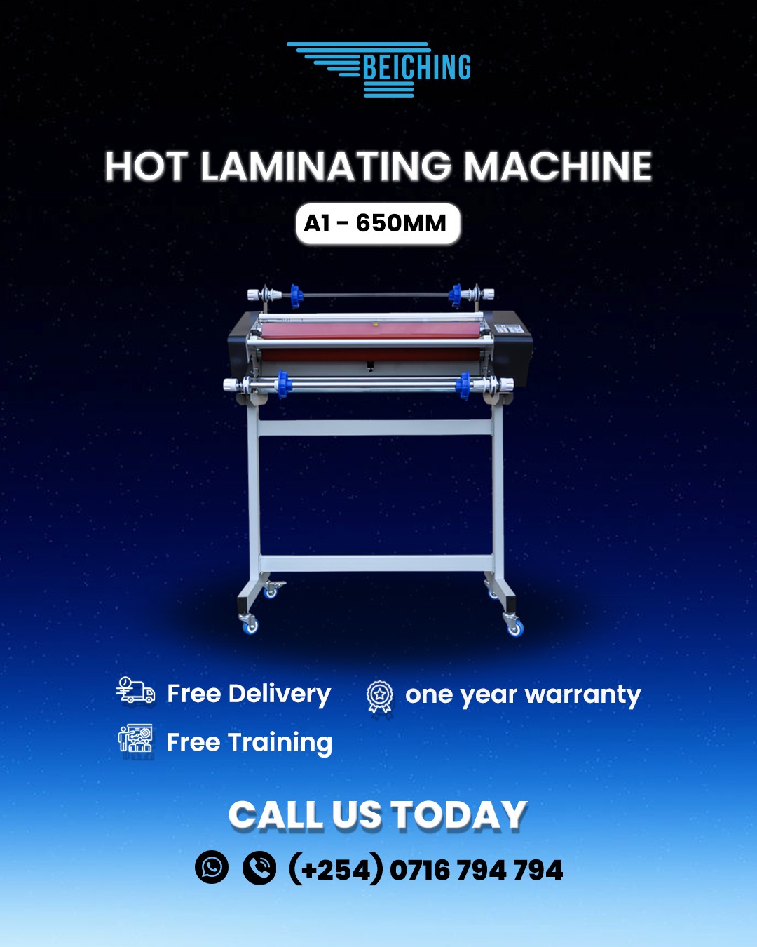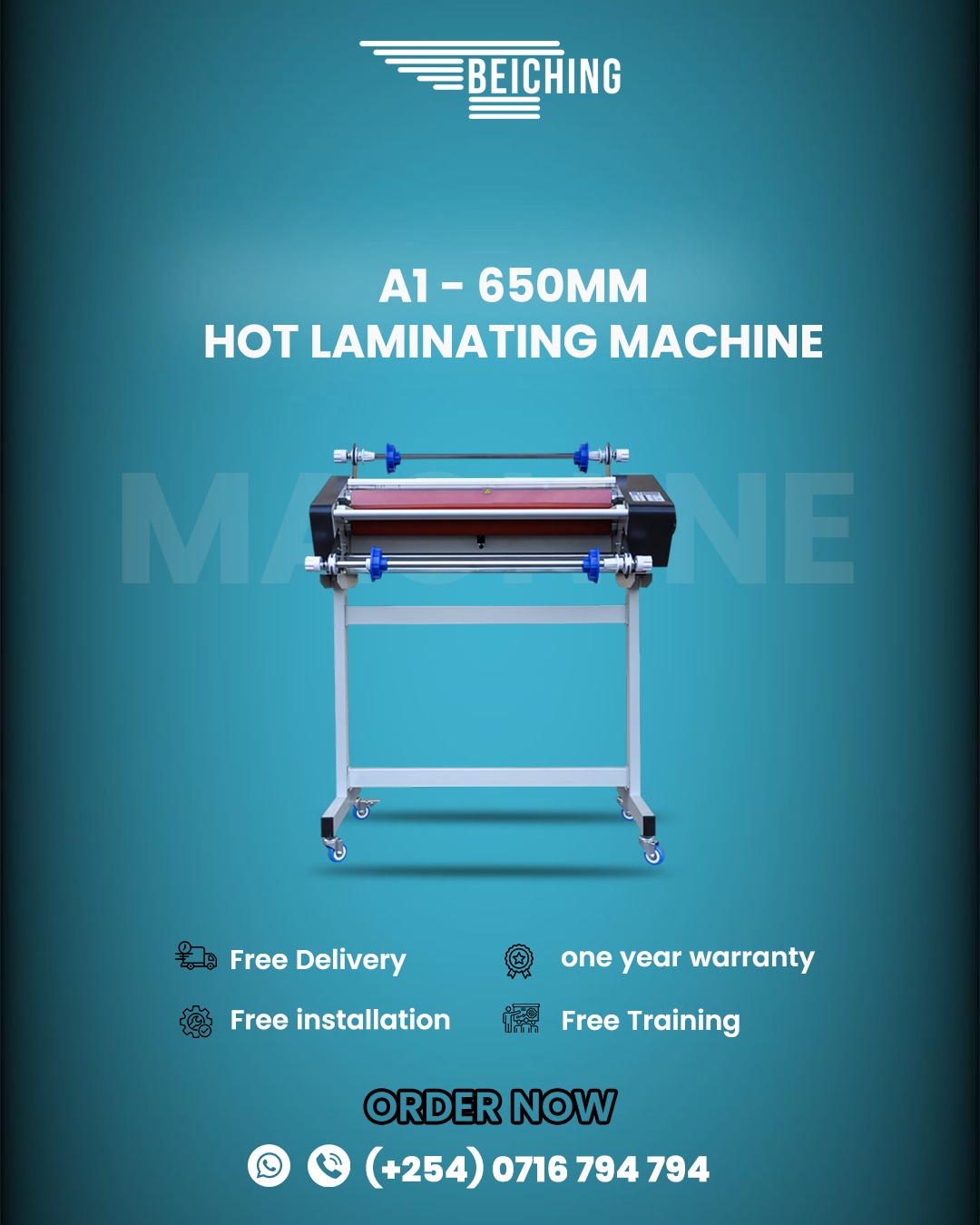 BEICHING KE @beichingKe · Feb 17 🔥 A1 – 650MM Hot Laminating Machine – Professional glossy finish! Perfect for large prints & posters. 🎁 Free Delivery | 🛡️ 1 Year Warranty | 🔧 Free Installation | 🎓 Free Training 📞 WhatsApp: +254 716 794 794 #LaminatingMachine #PrintShopEquipment #LargeFormatPriOAXp2O 1 6
