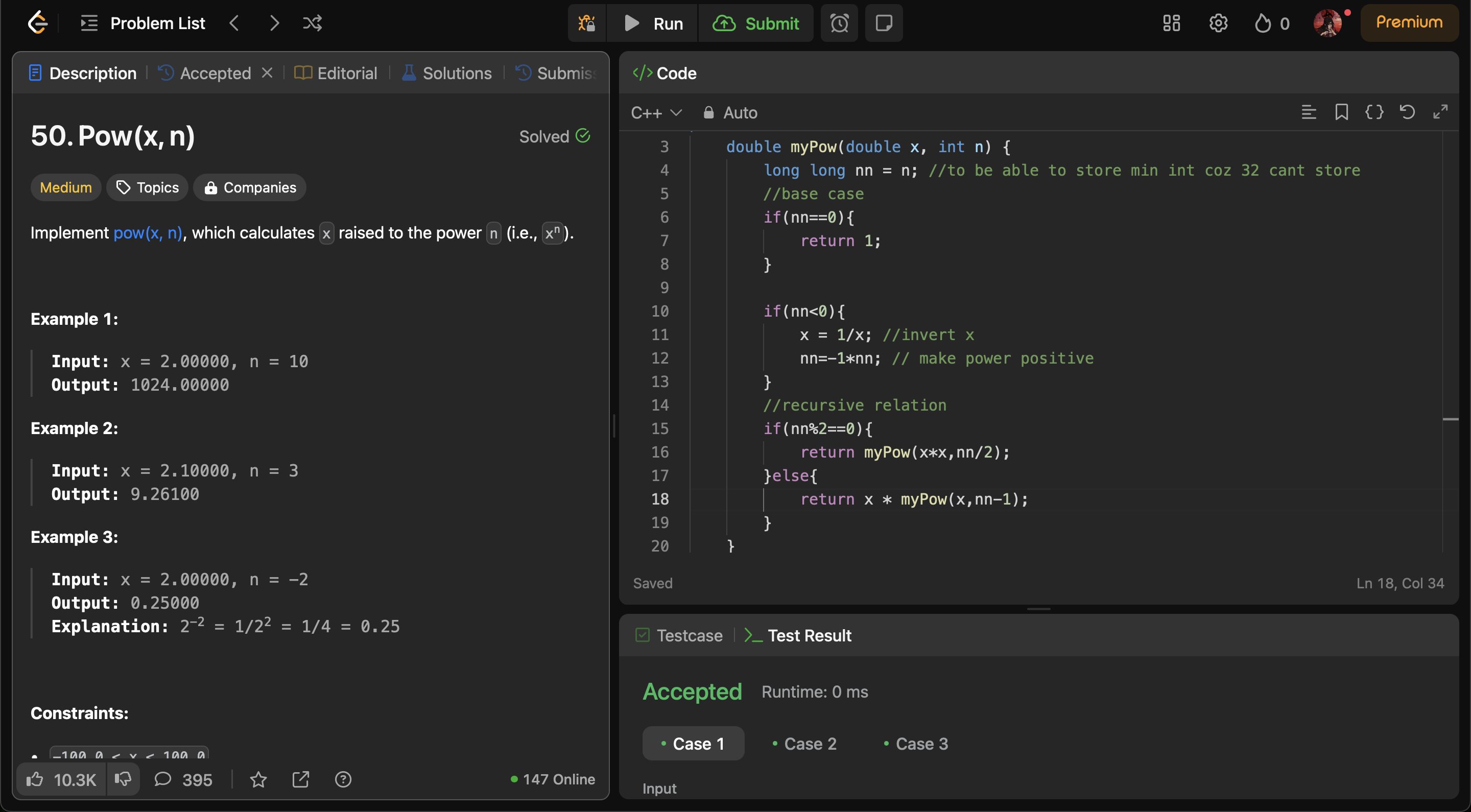 Struggled with #leetcod 50 Pow(x, n) at first