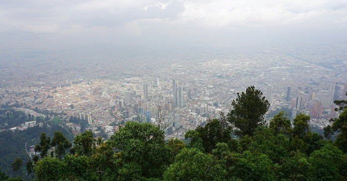Panoramic view of Bogotá, Colombia. The city is redesigning five neighborhoods to centralize resources and encourage trips by foot and bike, subsequently reducing air pollution. Photo: @datingscout...