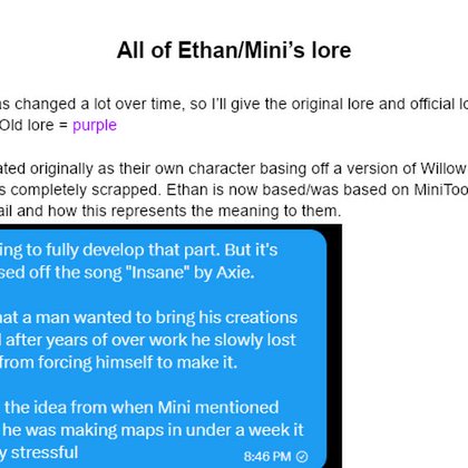 From clivilius.comAll of Ethan/Mini’s lore Ethan’s lore was changed a lot over time, so I’ll give the original lore and official lore. Official = pink, Old lore = purple Ethan was created originally as their own...
