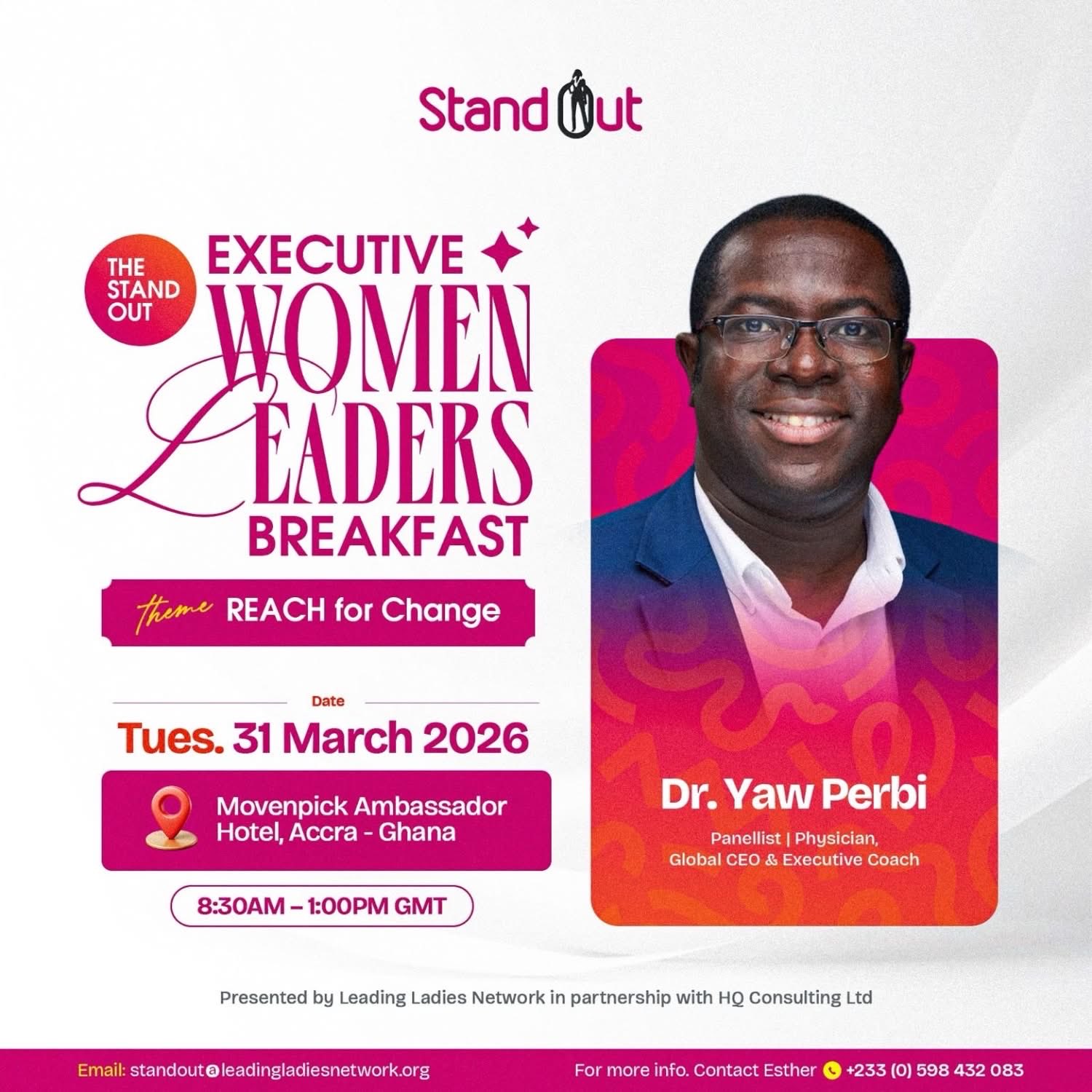 Often, issues of #women in #love and #leadership are treated in a vacuum. Well, no more. Because these are real people who have to deal with other real people in real life! As the #StandOut Women's Leadership Program continues to grow in reach and impact, one thing is clear: we conversations about women’s leadership without engaging the men who influence, support, and shape the ecosystems we operate in. That is why this moment matters. Michael Charway and I (two gentlemen) join our gallant women leaders for a timely and honest panel conversation: “Life, Love & Leadership.” We will explore: • How ambitious women can navigate career growth while building meaningful relationships • What it takes to bring male colleagues, partners, and spouses along as true allies • The real question behind it all: Can women have it all or do we need a new definition of “all”? This is not a surface-level conversation. It is the kind that challenges assumptions, reframes expectations, and equips women to lead more intentionally. If you are a woman committed to becoming your next-level self, this is a room you want to be in. Join us. Register today. forms.gle/fmfJStJhGuJrCn…