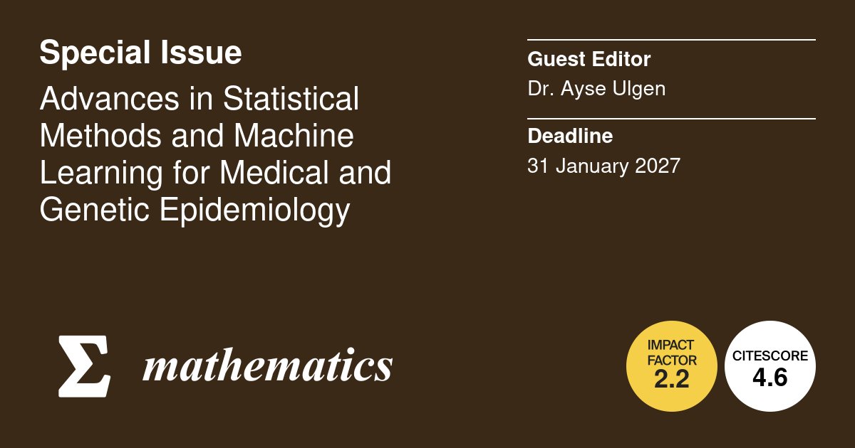 🎊 Deadline extended for the Special Issue "Advances in #Statistical_Methods and #Machine_Learning for #Medical and #Genetic_Epidemiology"!
