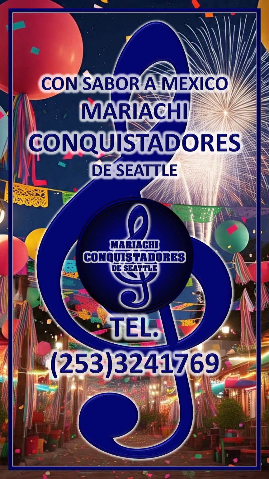 PARA SERVIRLES; MARIACHI CONQUISTADORES DE SEATTLE, CON SABOR A MÉXICO. LLÁMENOS TEL.(253) 324-1769. Y RESERVE LA FECHA DE SU EVENTO, FIESTA O REUNIÓN.