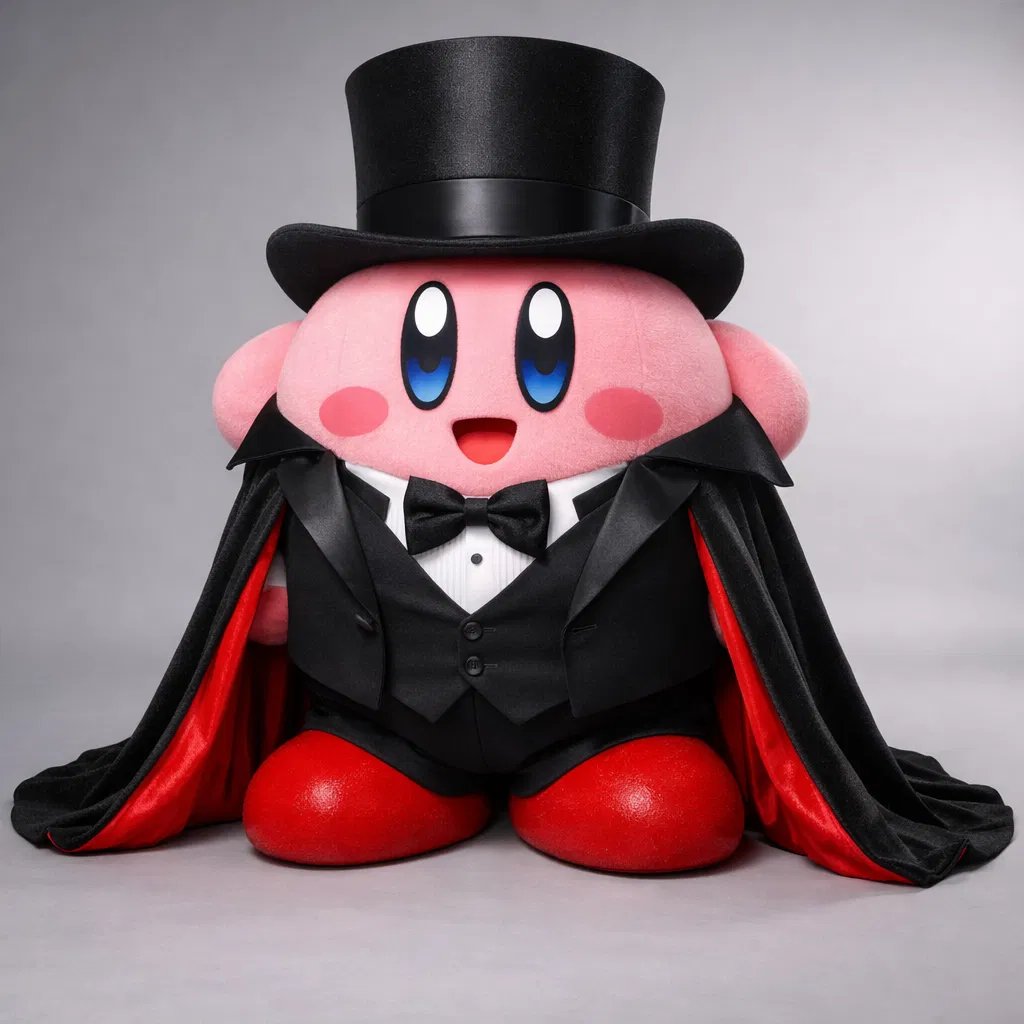 ChaoEmperor Productions LLC @ChaoemperorC · 2d The caped Kirby mascot has come a long way, even from his recent races on Kirby Air Riders! #kirby #mascot #mascotcostume #cape #tophat #tuxedo #cosplay 1 18