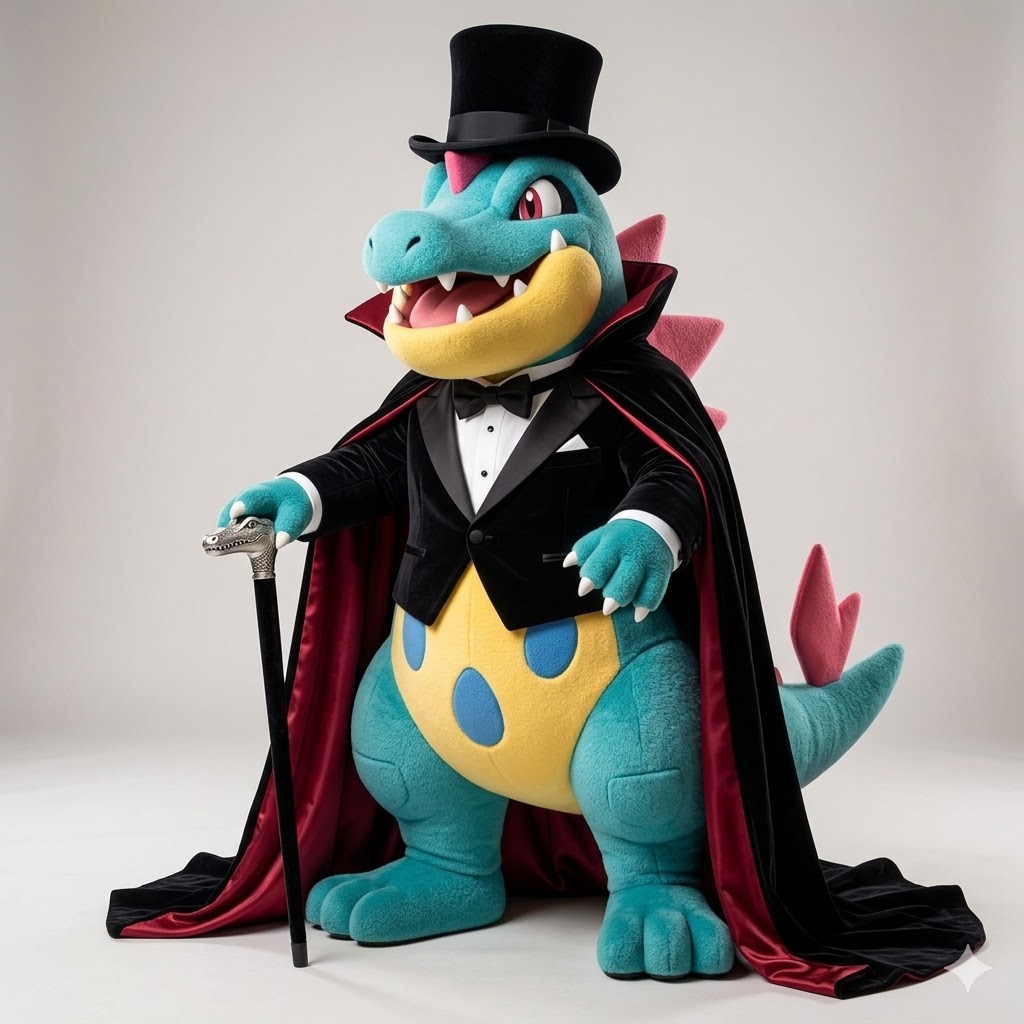 ChaoEmperor Productions LLC @ChaoemperorC · 2d Dr. Erich the Croconaw is Professor Dustin the Totodile's elder brother. This caped mascot takes an afternoon stroll before each formal dinner to relax his stress and temper each day. #croconaw #mascot #mascotcostume #johto #pokemon #formal #cape #tophat #tuxedo 18