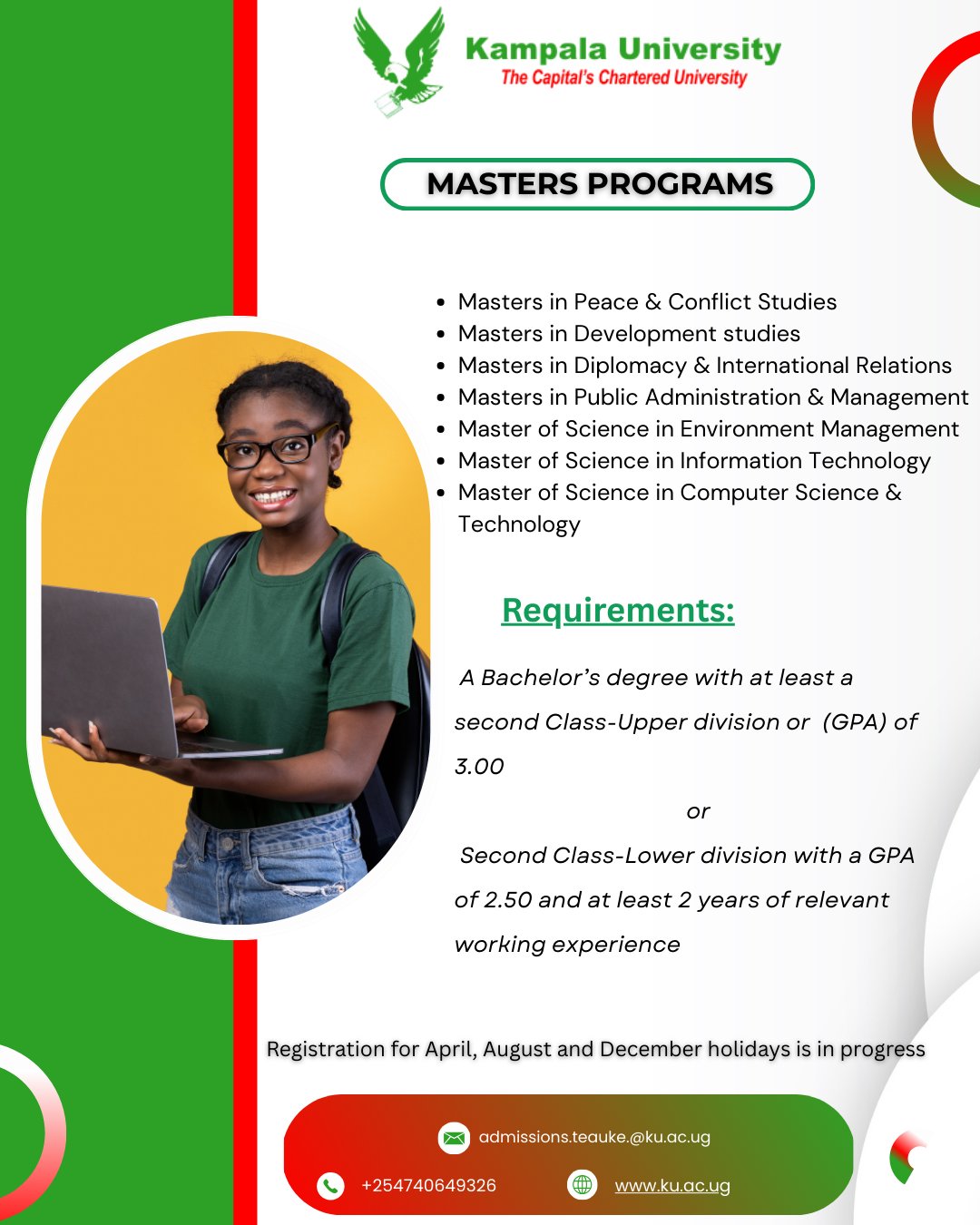 We are now accepting applications for Master’s Programs designed to equip professionals with advanced knowledge and leadership skills.