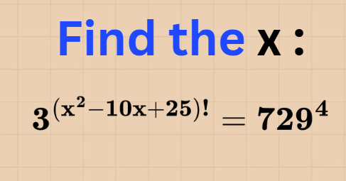 3^{(x² − 10x + 25)!} = 729⁴
