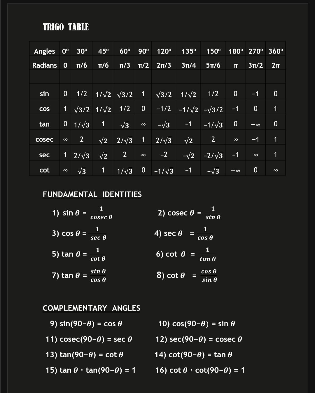 #Trigonometry table on my fingertips and could solve every question based on it within minutes 🥲