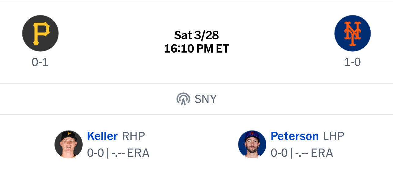 From justmets.netGet tickets to New York Mets vs. Pittsburgh Pirates at 4:10PM on 03/28/26 at Citi Field Stadium (Mets) in New York City. NYC.com, New York's Box Office, has tickets and information for all major New...