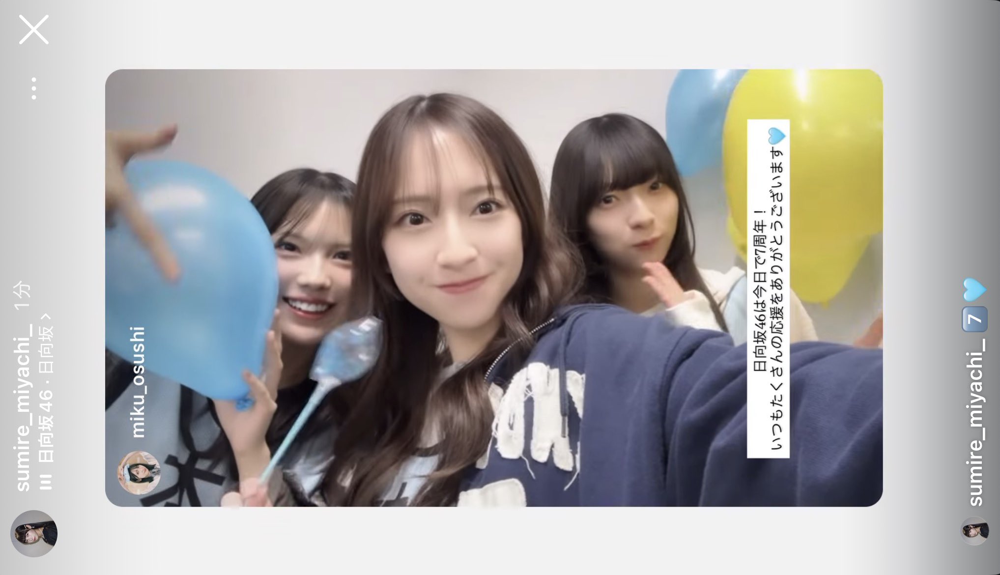 高司 @4mNfPMHuvshDiD8 · 22h #mikugram #金村美玖 #森本茉莉 #宮地すみれ #日向坂46デビュー7周年 #日向坂46 instagram.com/stories/miku_o… 日向坂46 @hinatazaka46 · 22h 本日、#日向坂46デビュー7周年 を迎えました🎊 いつも応援いただきありがとうございます! これからもたくさんのハッピーオーラが届きますように🌈 8年目の日向坂46もよろしくお願いいたします☀️ #日向坂46 #七回目のひな誕祭 #おひさまいつもありがとtF 2 230