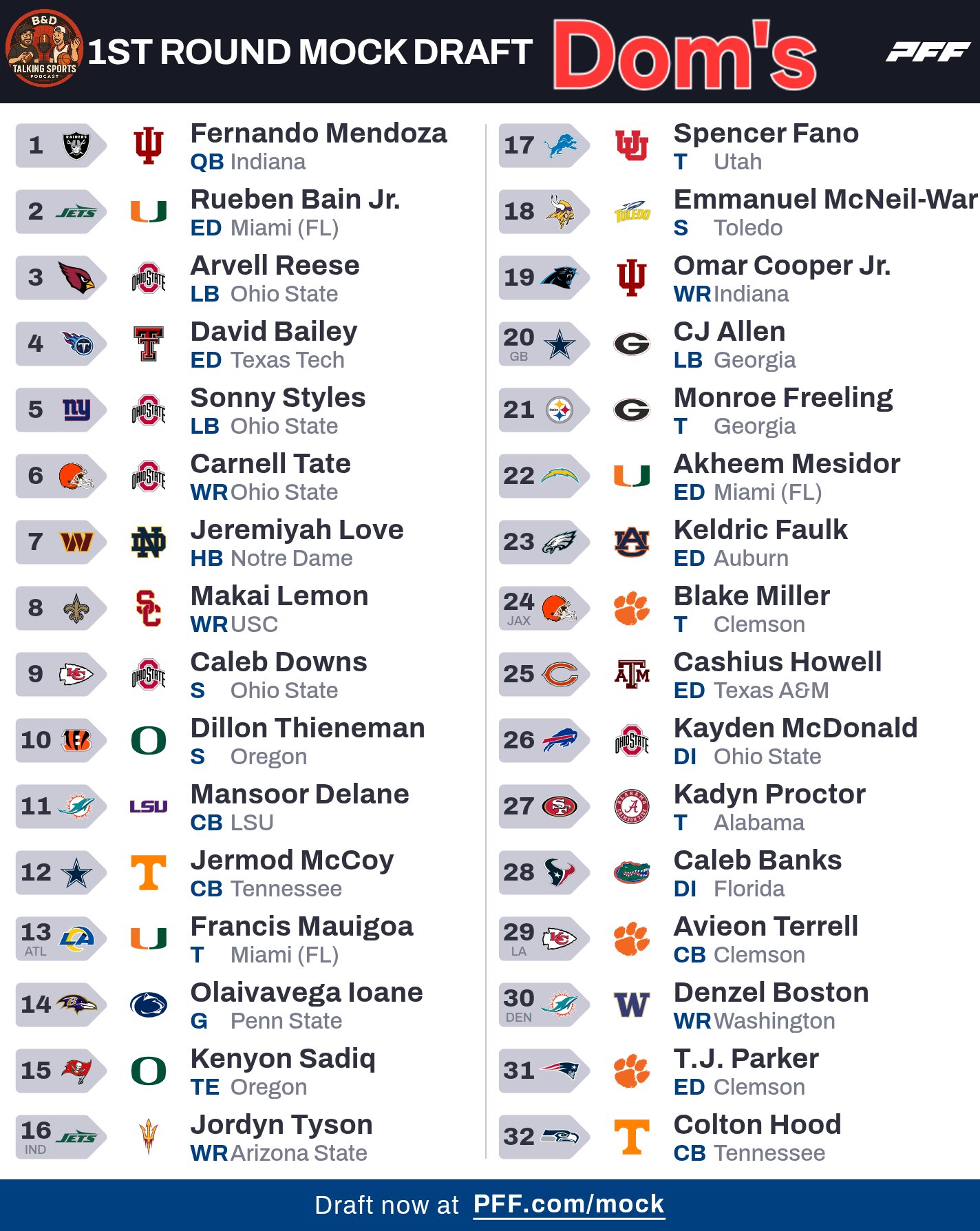 Great job by every content creator on the Mock Draft 2.0 tonight. Well thought out and plans executed. Phyro? Bro that pick for the Phins at 29 was a mind shocker. #NFL#MockDraft