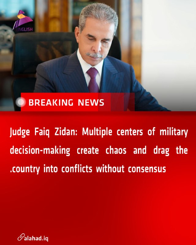 Judge Faiq Zidan: Multiple centers of military decision-making create chaos and drag the country into conflicts without consensus