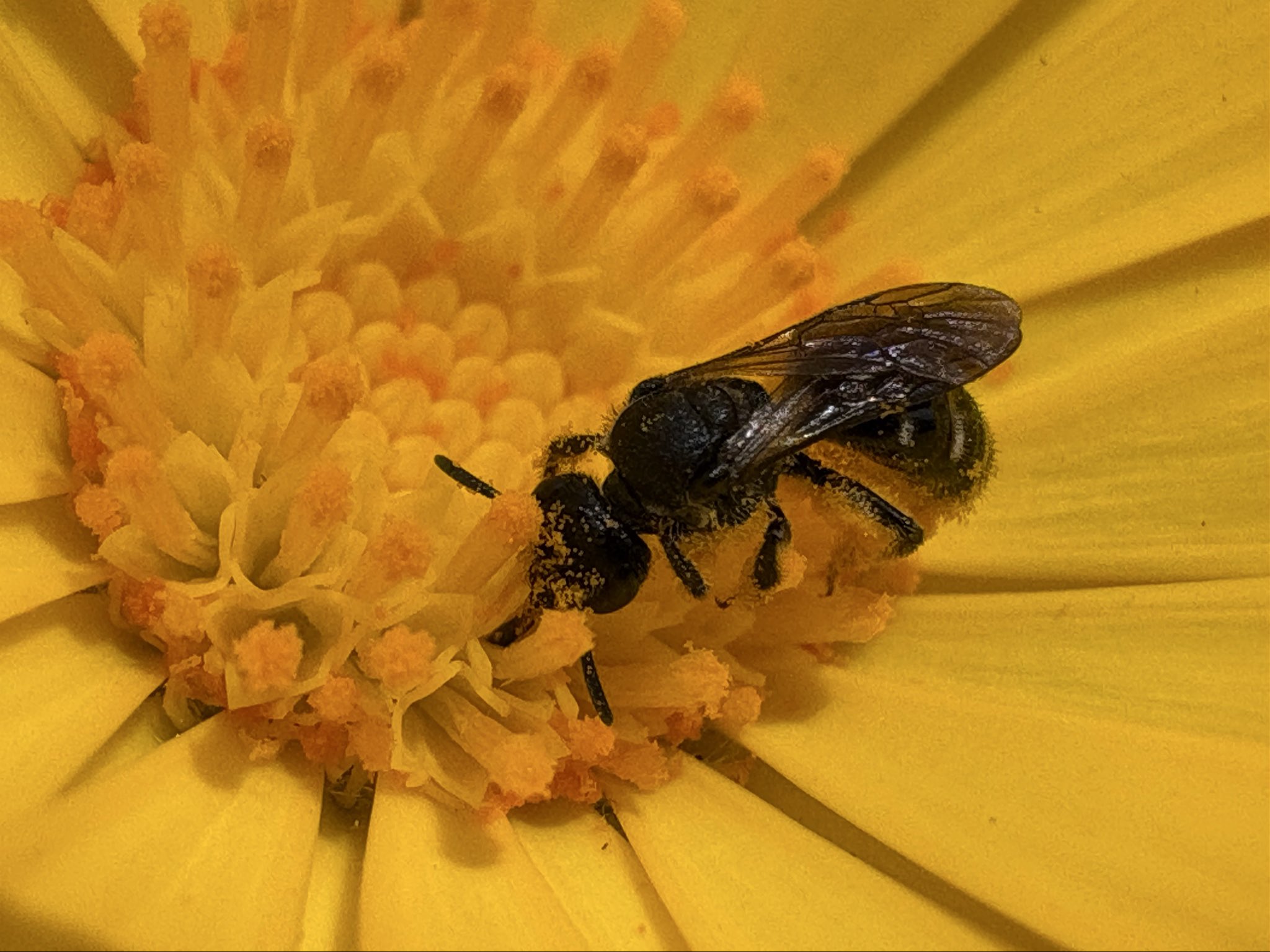 It’s officially warm enough that the small and very small bees are on the move. Larger to smaller, Lasioglossum kincaidii, Halictus tripartitus and Dialictus, all females. I spotted two Agapostemon subtilior, but they did not 📷cooperate. [Alameda, CA 3-13-26] #bees#nativebeesk