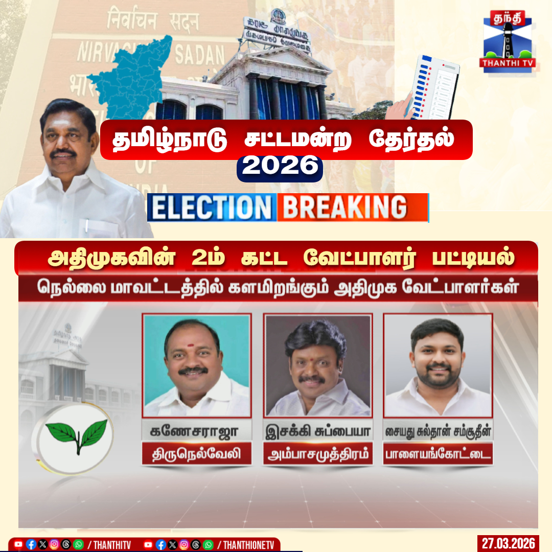 நெல்லை, அ.தி.மு.க. பொதுச்செயலாளர் எடப்பாடி பழனிசாமி நெல்லை டவுன் வாகையடி முனையில் நாளை (ஞாயிற்றுக்கிழமை) வேட்பாளர்களை அறிமு கம் செய்து பிரசாரம் செய்கிறார்.தமிழகத்தில் அ.தி.மு.க. தலைமையில் தேசிய...