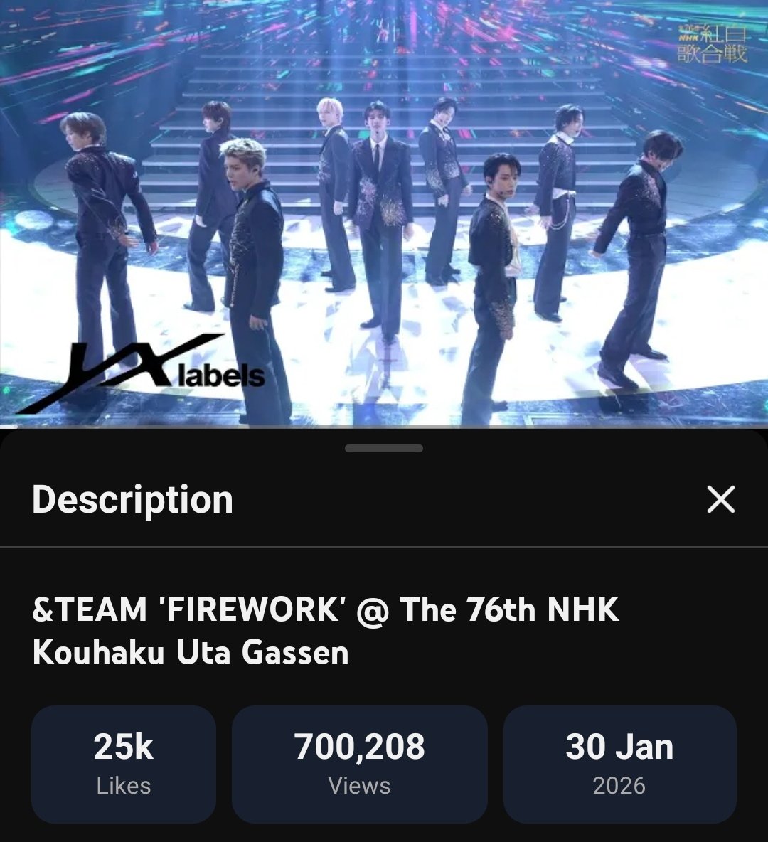 “&TEAM 'FIREWORK' @ 76th NHK Kouhaku Uta Gassen” has surpassed 700,000 views.