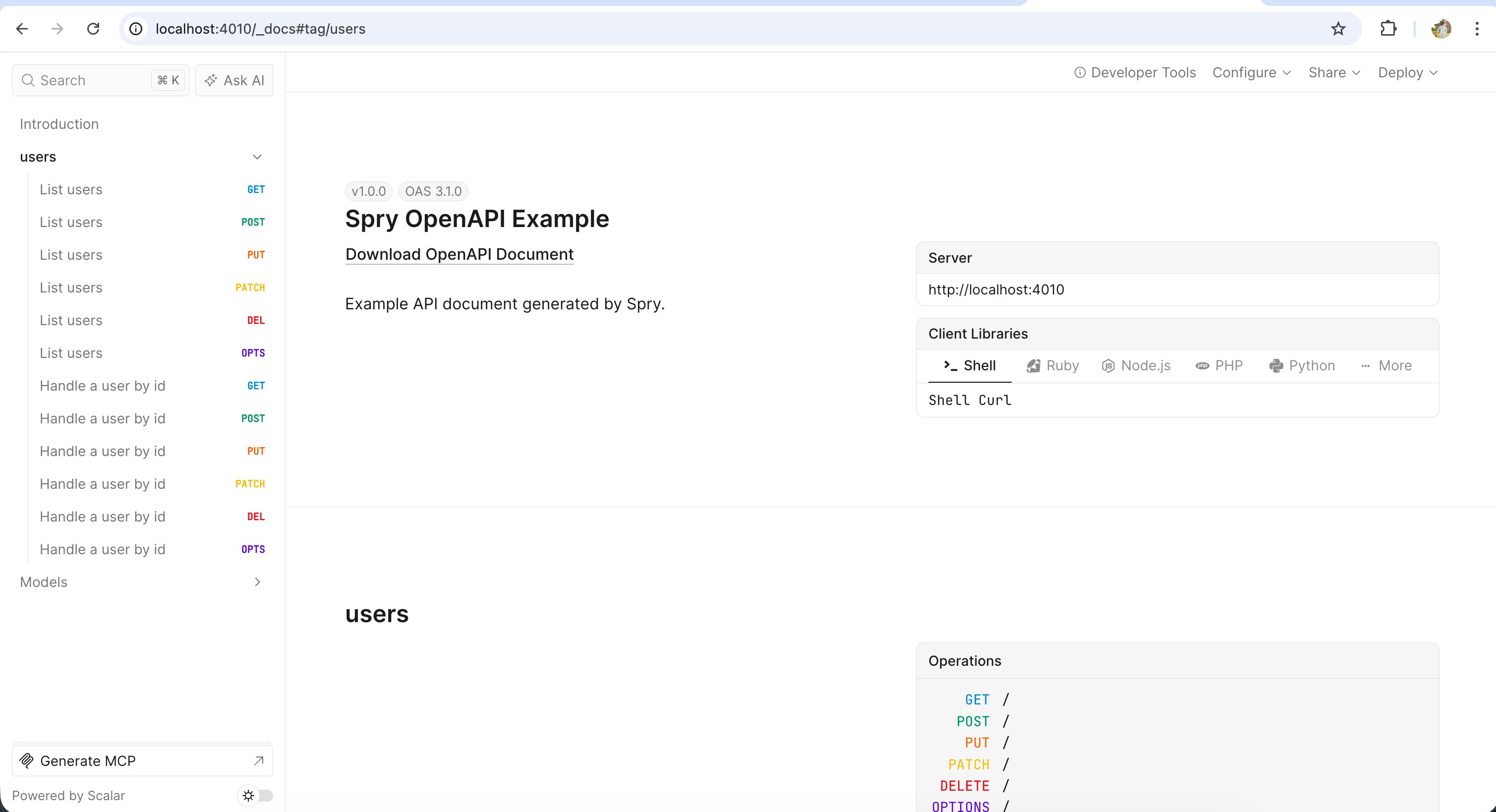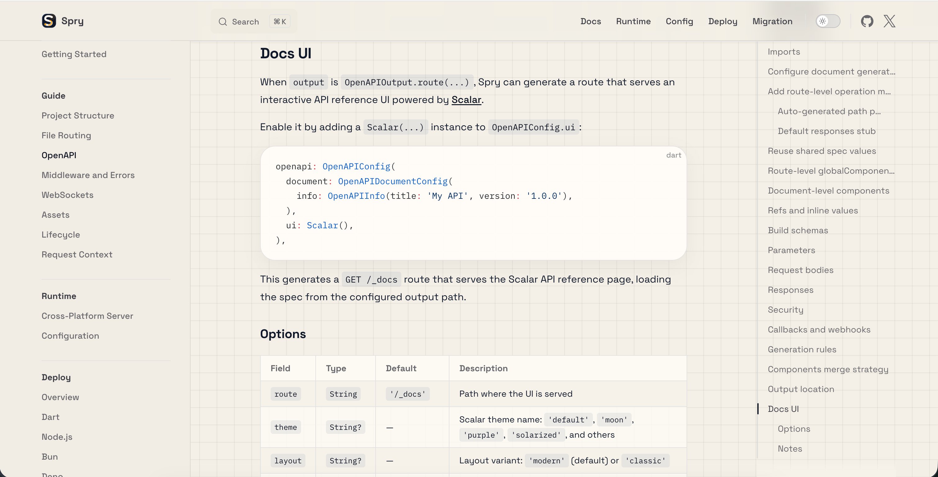 From github.comHighlights Spry 8.3.0 adds first-class OpenAPI 3.1 generation driven by filesystem routes and typed route metadata. This release introduces document generation from spry.config.dart, typed OpenAPI ...