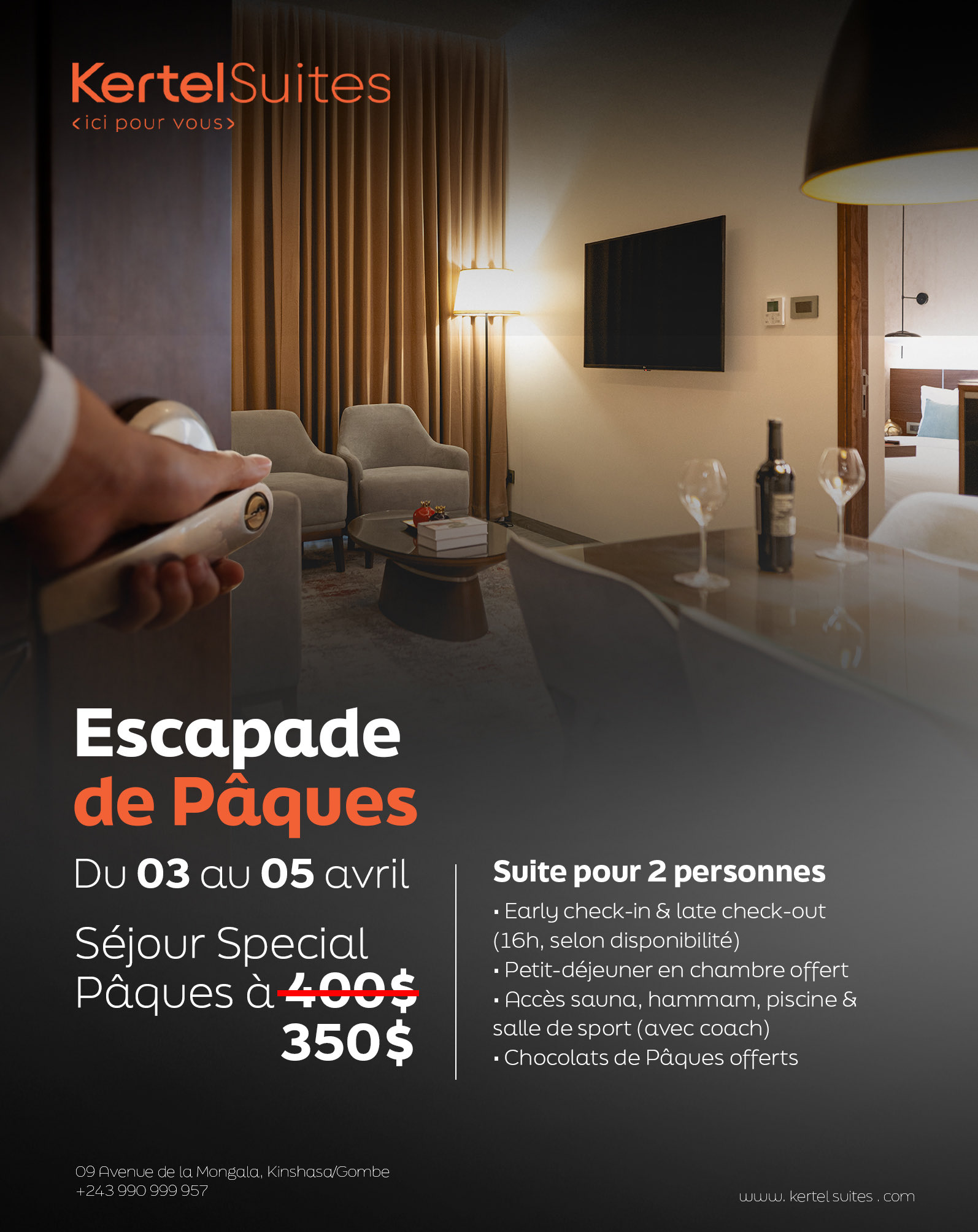 Du 03 au 05 avril, profitez d’un séjour exceptionnel à Kertel Suites :