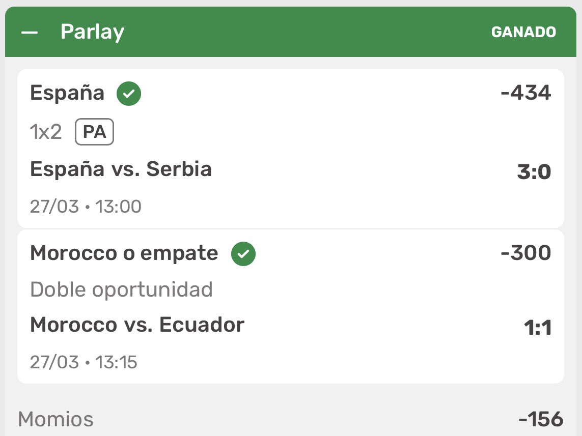 Ganamos nuestros Dos Parlay de #Futbol Internacional #FIFA ⚽️⚽️
