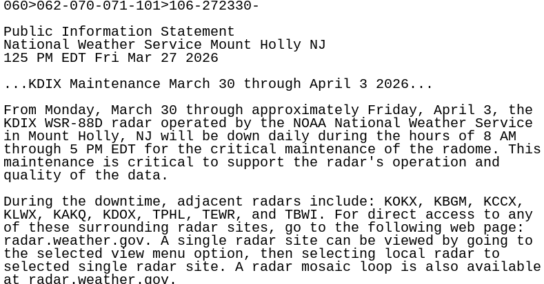 From mesonet.agron.iastate.eduPNS issued by NWS PHI at 27 Mar 2026 17:25 UTC