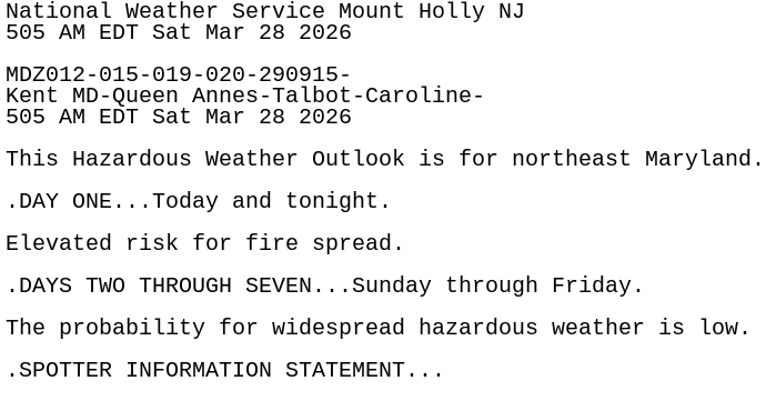 From mesonet.agron.iastate.eduHWO issued by NWS PHI at 28 Mar 2026 09:05 UTC