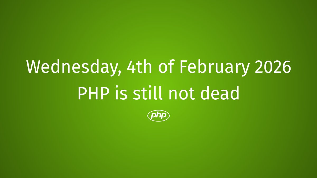 Is PHP dead? @PhpDead · Jan 19 PHP still not dead #php #PHPCode #PHPCoding #PHPResurgence #PHPCommunityGrowth #PHPPostMortem #FarewellPHP #PHPProjects #PHPRebirth #PHPLovers 4
