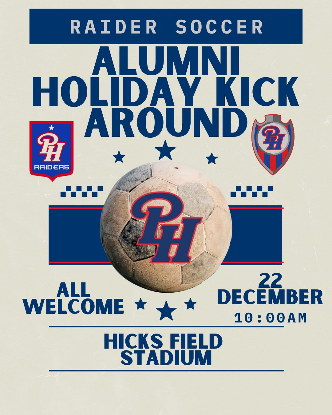 Raider fans your soccer team have battled their way to the district championship match against the Guardians of St. Michael!! Tomorrow, 6:30 on Hicks Field!! Be there and be loud!! #phraidernation#tng#jogabonito