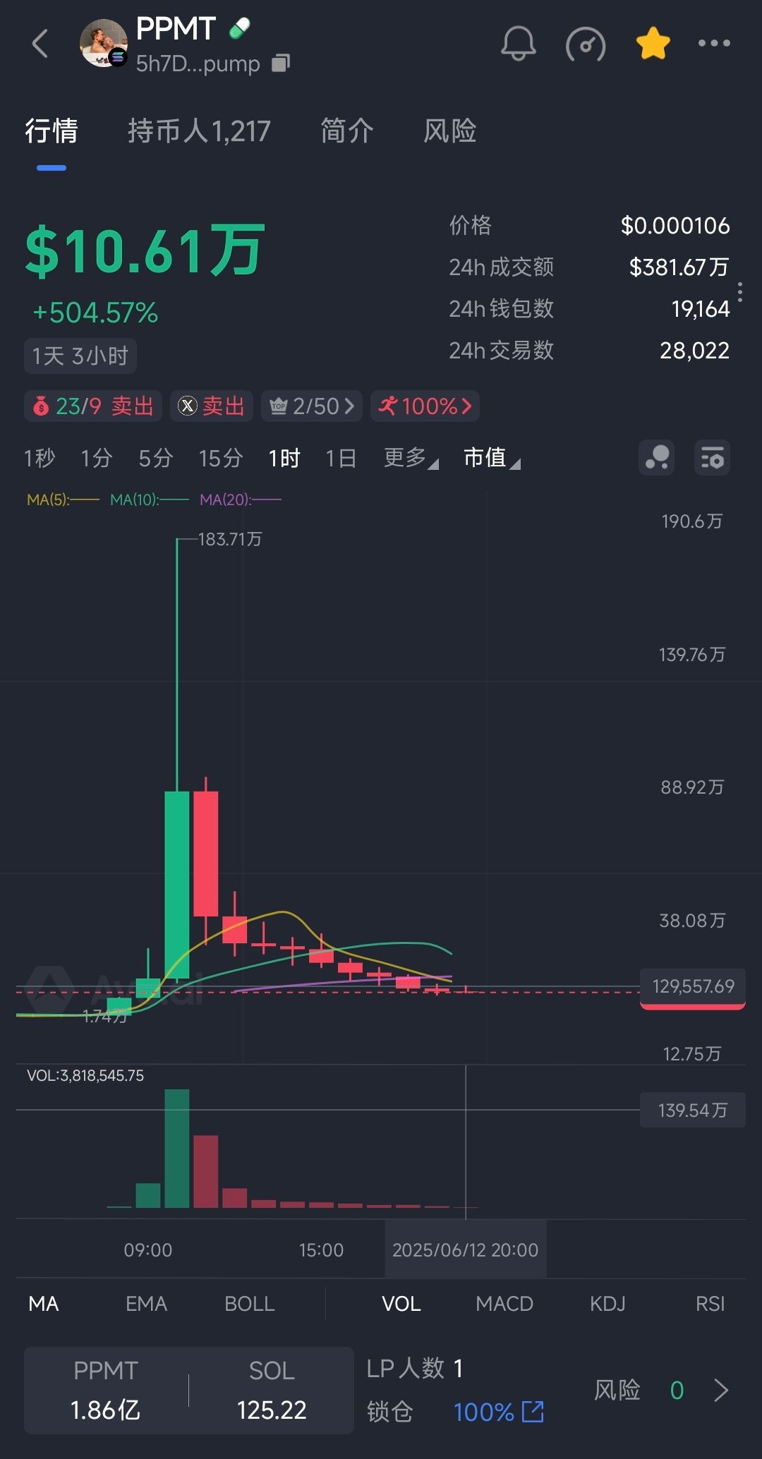 派大星 @paidaxing5 · Jun 16, 2025 🧨5-minute data update: $PPMT 📈Price: 0.00013138 💊CA: [5h7D4NFSYSKwkZkv2hFqgmNoaTbfoLbWoocaMVfJpump] ✅Fast tradingmgn.ai/sol/token/FLYT…6FH 👫Group queries: 3 🙋♂️Personal queries: 3 #PPMT #meme 276