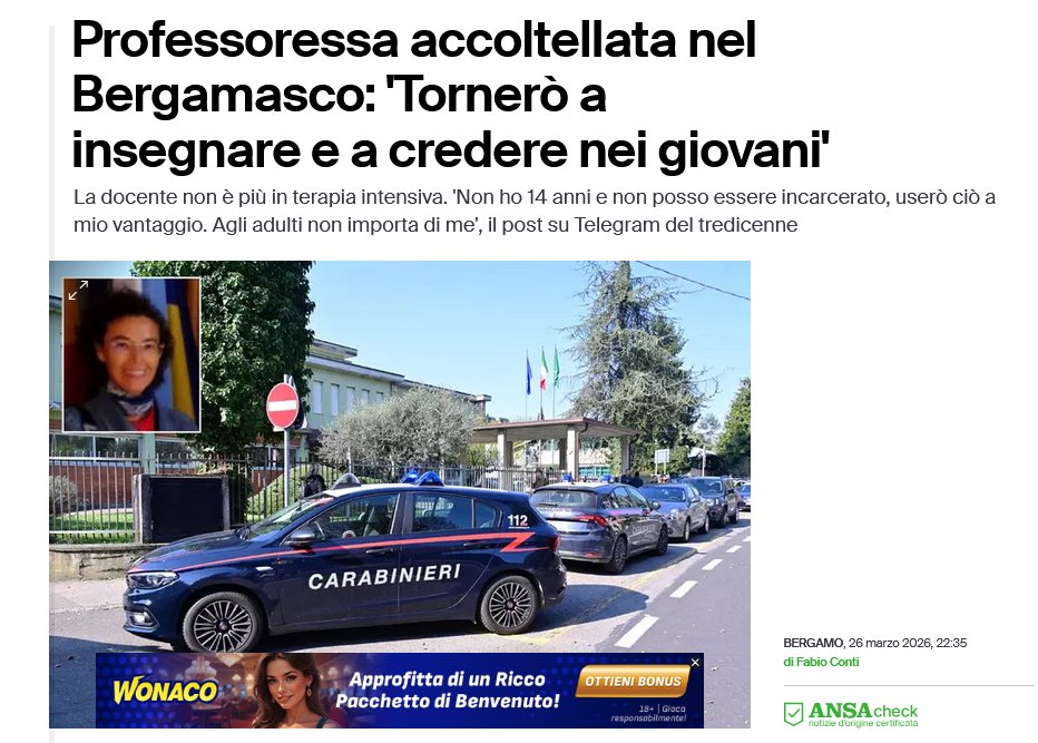 La #professoressa accoltellata nel bergamasco non è più in terapia intensiva, e questa è una bella notizia.