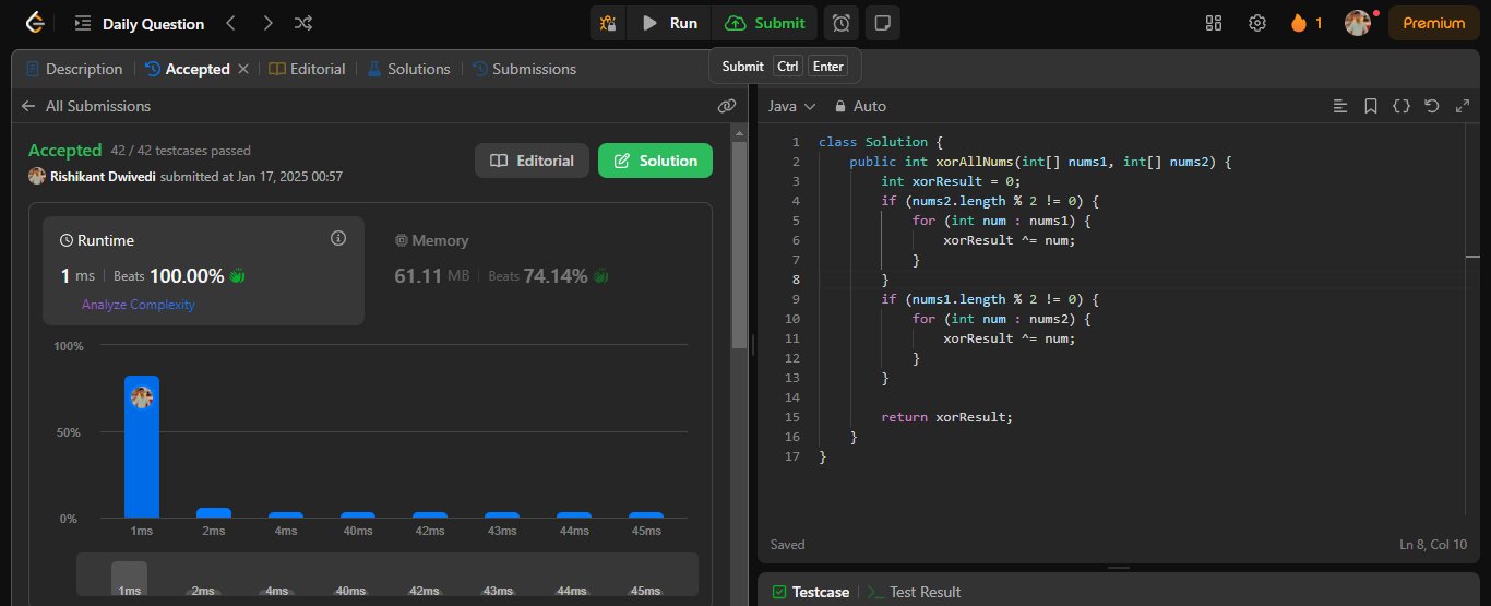 #Day1 #75DaysCoding #programmingprobs @LeetCode POTD [2425: Bitwise XOR Of All Pairings ]