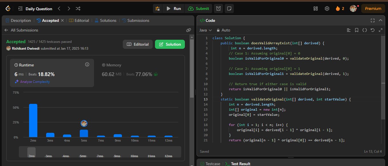 #Day2 #75DaysCoding #programmingprobs @LeetCode POTD [2683: Neighboring Bitwise XOR ]