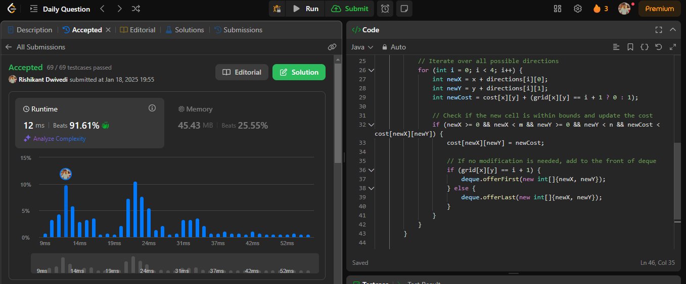 #Day3 #75DaysCoding #programmingprobs @LeetCode POTD [1368: Minimum Cost To Make at Least one Valid Path In Grid ]