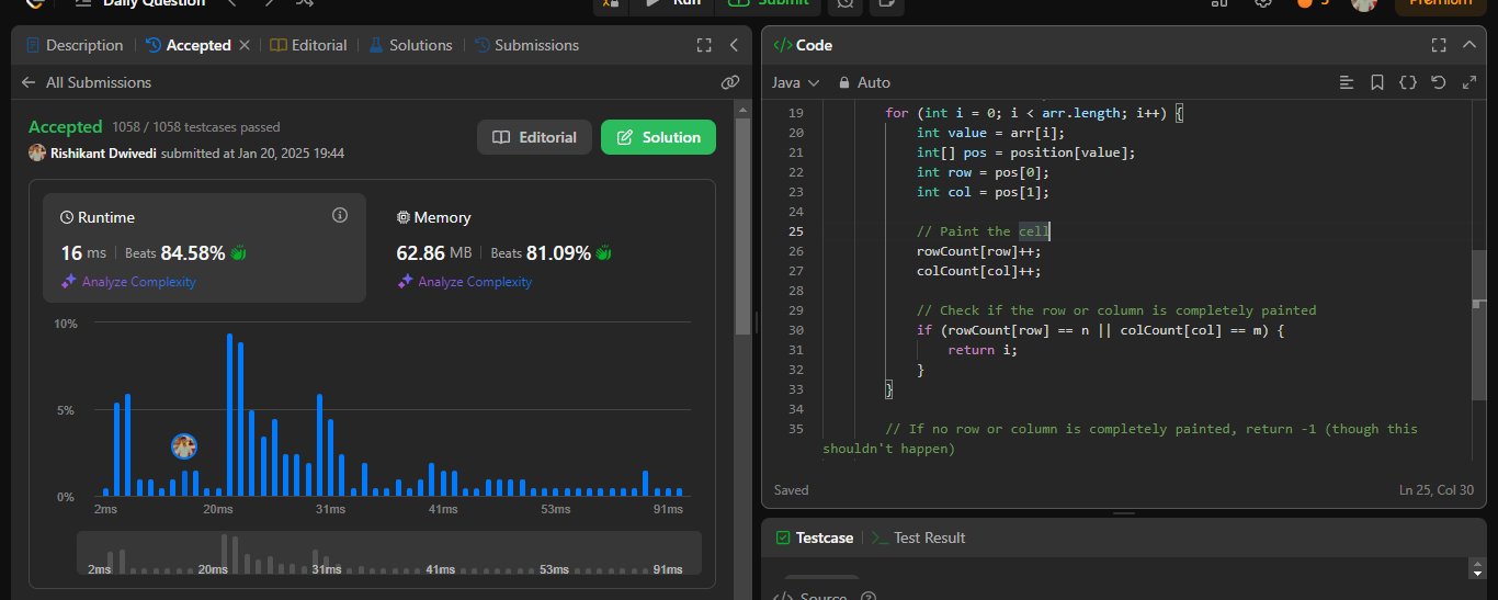 #Day5 #75DaysCoding #programmingprobs @LeetCode POTD [2661: First Completely Painted Row Or Column ]