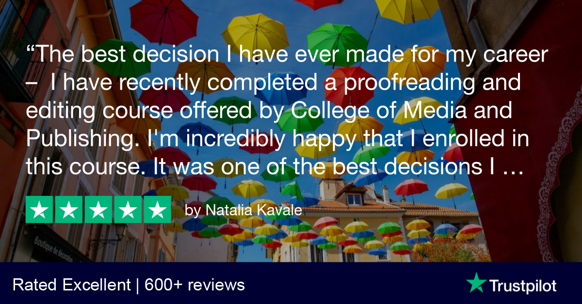 CMP - Online College 📚🌍🎓 @CollegeMediaPub · 17h Read more reviews from our satisfied #proofreading and #editing #course learners, here: collegeofmediaandpublishing.co.uk/proofreading-e… #onlineCollege #LearnProofreading #proofreader #studentreview ⭐⭐⭐⭐⭐ 🥇 ☄️ #Excellent . 👨bT3 4