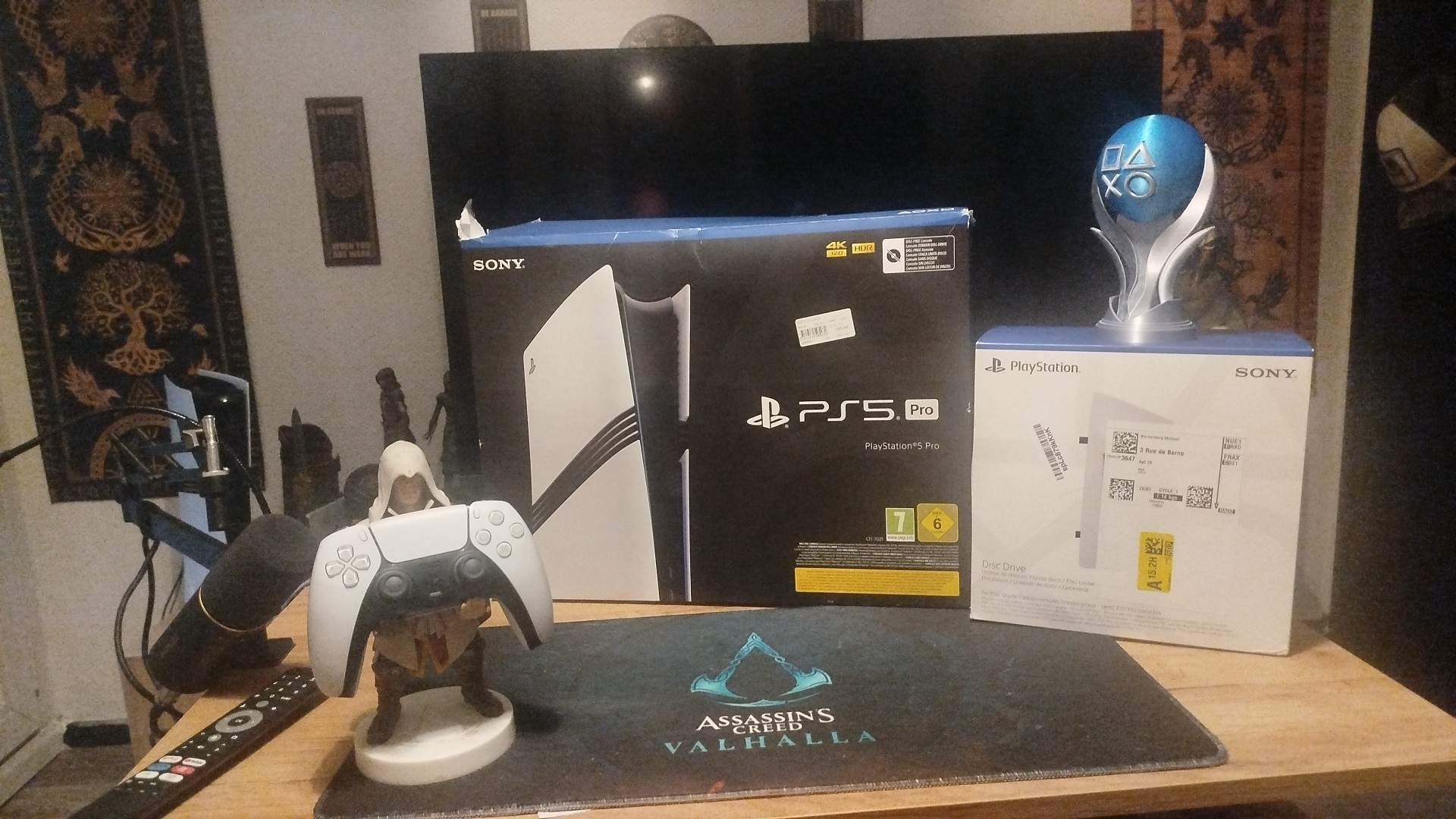 Playstation 5 pro avec lecteur de disque blu ray 4k & imprimante 3D trophée platine