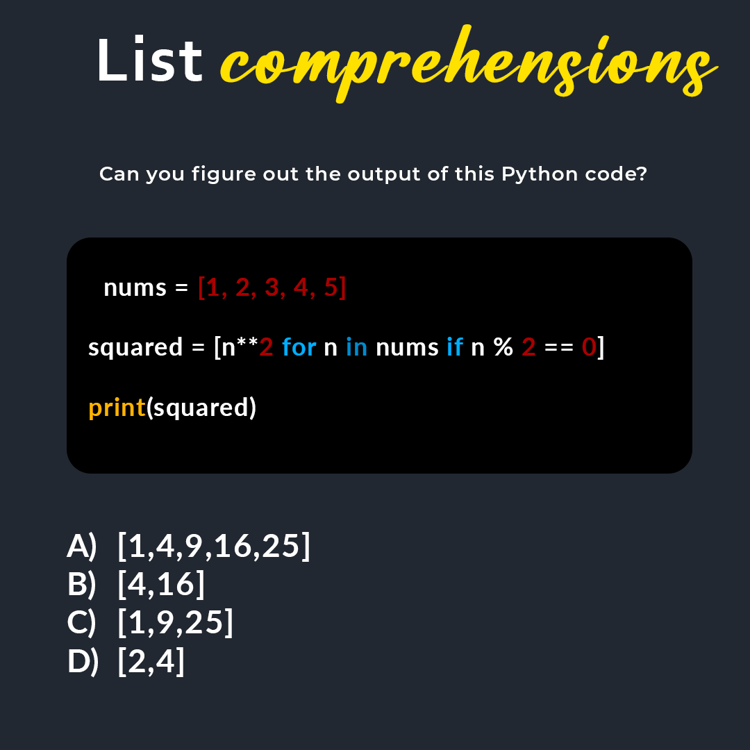 Hey, Pythonistas! 🐍 Let's test your knowledge of list comprehensions. What will the following code snippet output?