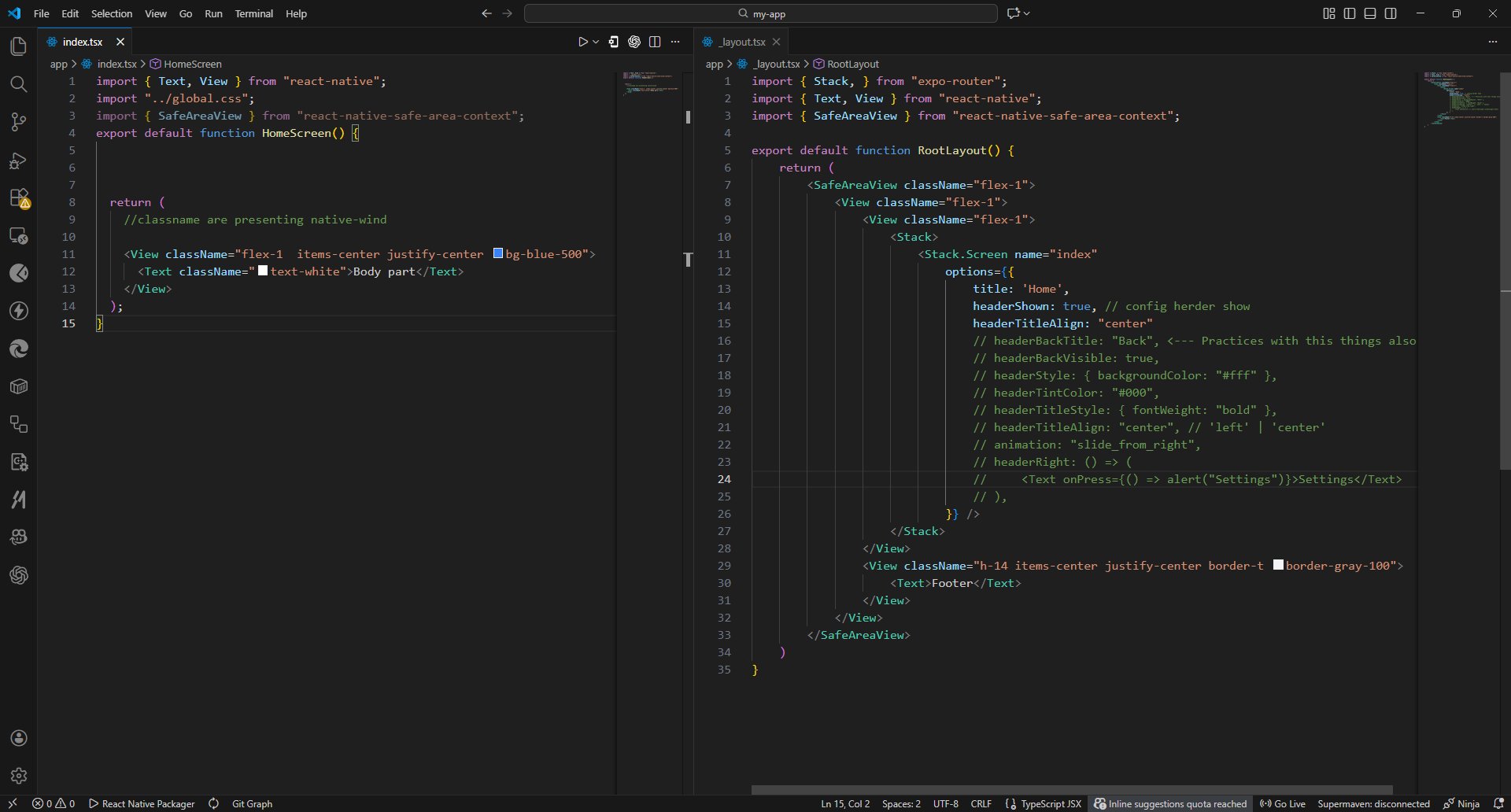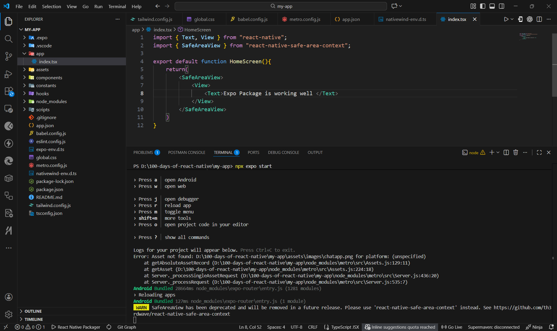 Harikara Prasadh @HarikaraPrasadh · Dec 12, 2025 Day 1: Install React Native / Expo, run first app #100DaysOfCode #codegold #reactnativetutorial #AppDevelopment Step 1: (Create project) npx create-expo-app@latest my-first-rn-app 1 2 636