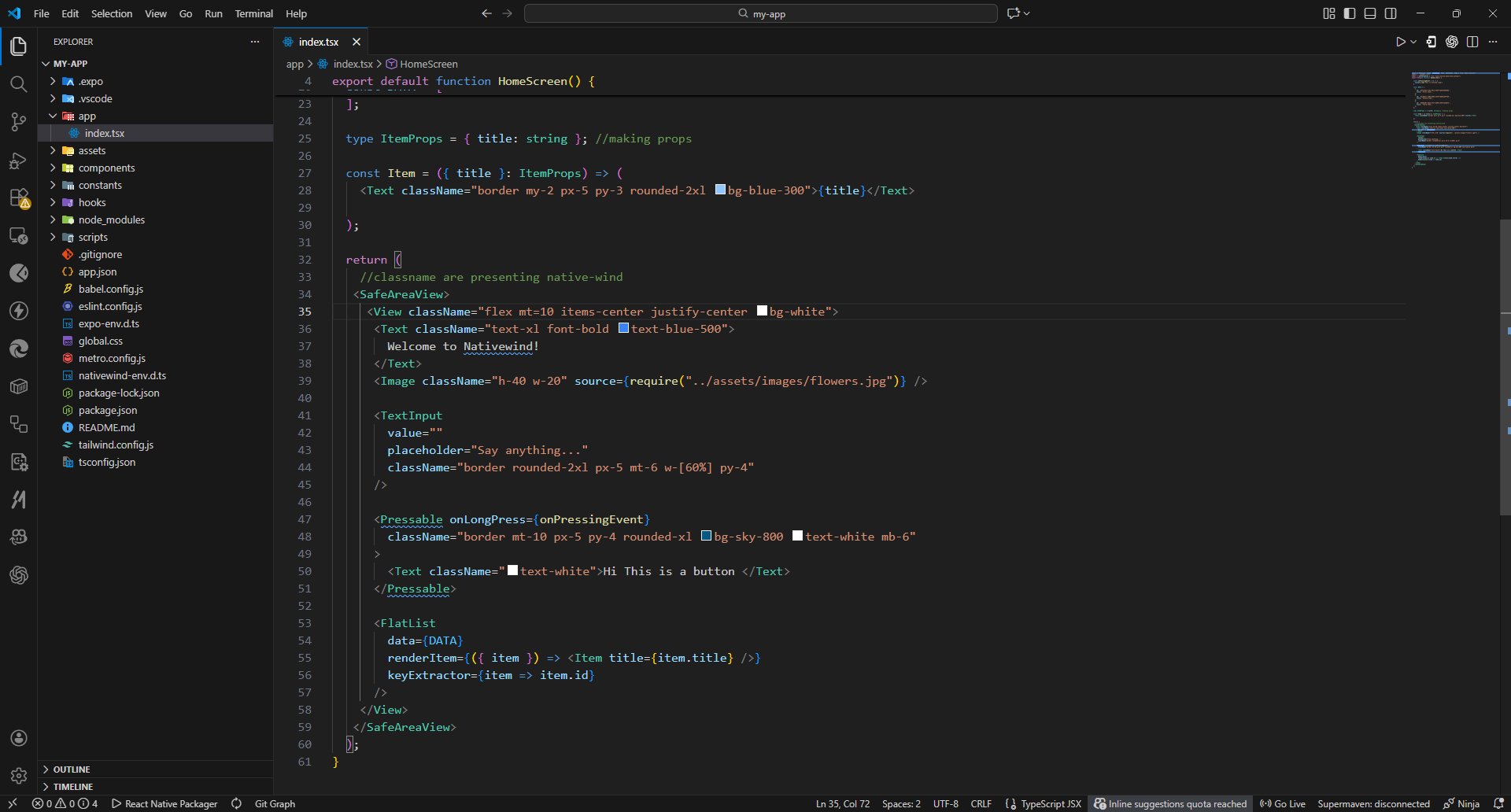 Harikara Prasadh @HarikaraPrasadh · Dec 15, 2025 Day 3: Native-wind style #100DaysOfCode #codegold #reactnativetutorial #AppDevelopment Learn more. nativewind.dev/docs/getting-s… 380