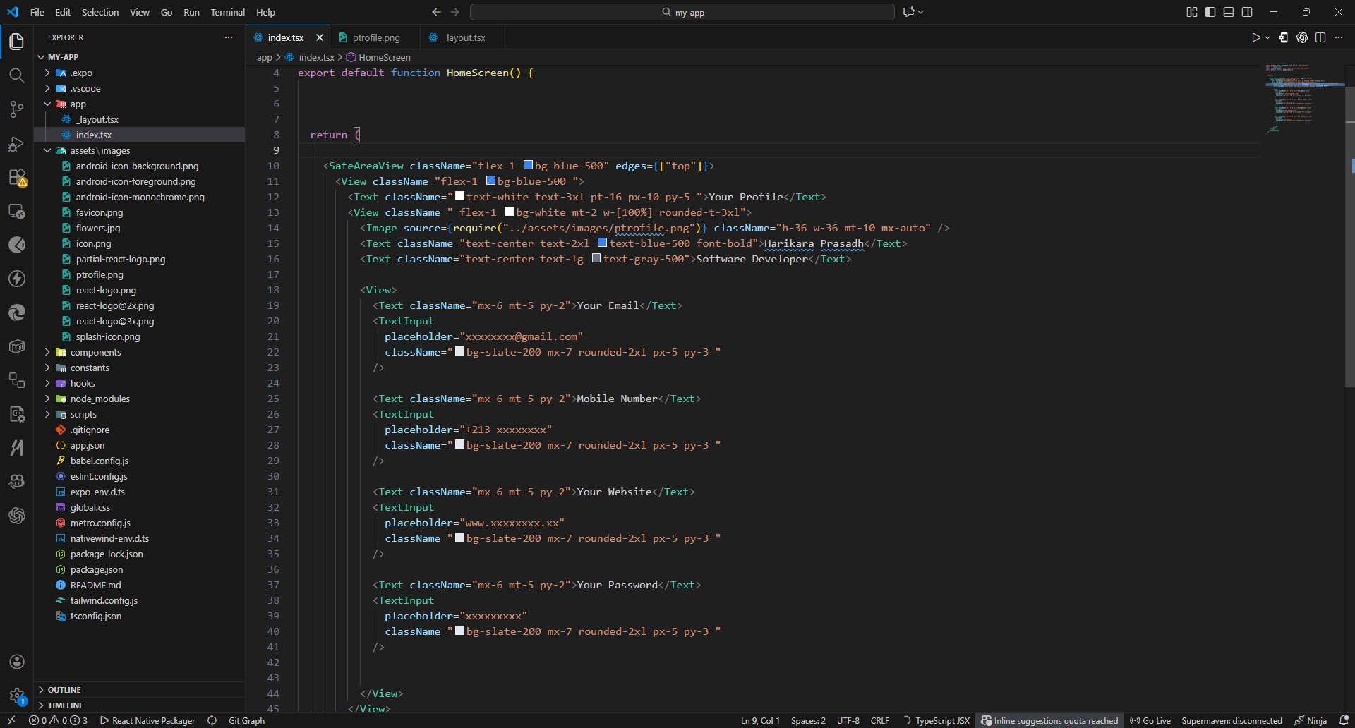Harikara Prasadh @HarikaraPrasadh · Dec 18, 2025 Day 5: Build a profile screen simple code for Profile screen UI #100DaysOfCode #codegold #reactnativetutorial #AppDevelopment 365