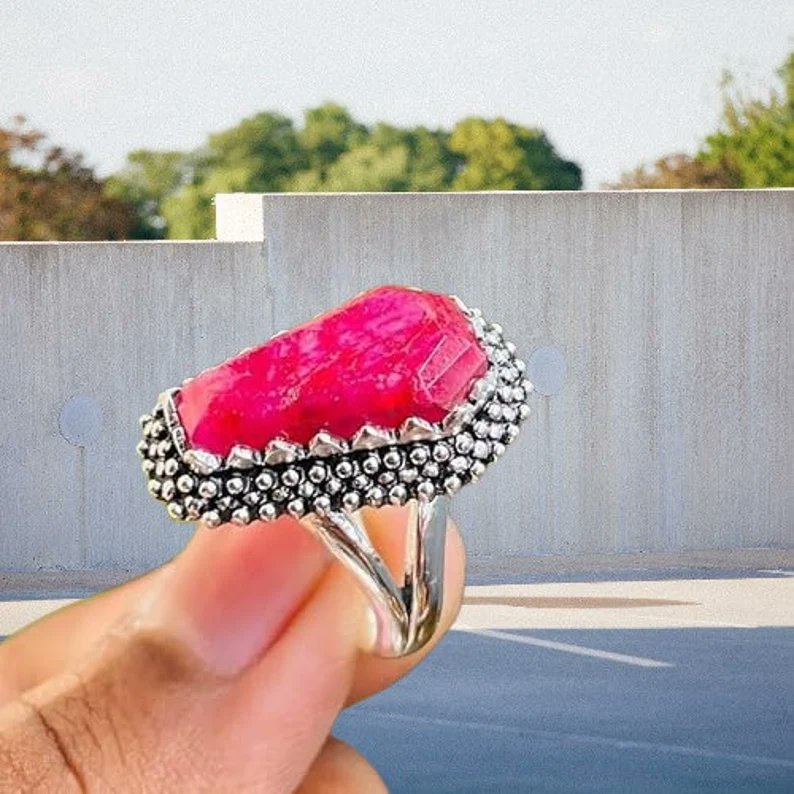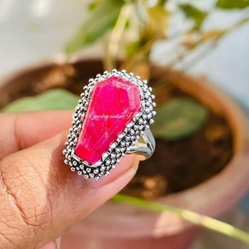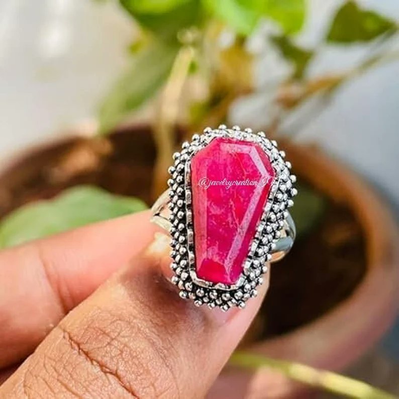 Indian Ruby Ring,925 Sterling Silver,Coffin Ruby Ring,Dainty Ring,Artisian Ring,Bridal Gift Ring,Promise Ring,Women's Ring,Red Ruby Jewelry