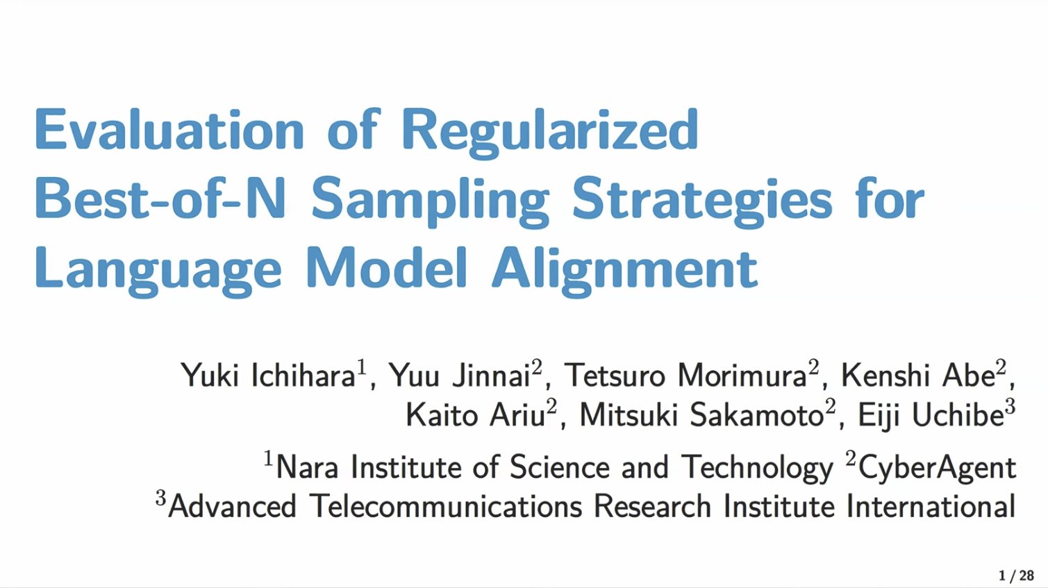 TMLR Papers with Videos @TmlrVideos · Apr 11, 2025 Evaluation of Best-of-N Sampling Strategies for Language Model Alignment Yuki Ichihara, Yuu Jinnai, Tetsuro Morimura, Kenshi Abe, Kaito Ariu, Mitsuki Sakamoto, Eiji Uchibe tmlr.infinite-conf.org/paper_pages/H4… #regularized #regularization #sampling 103