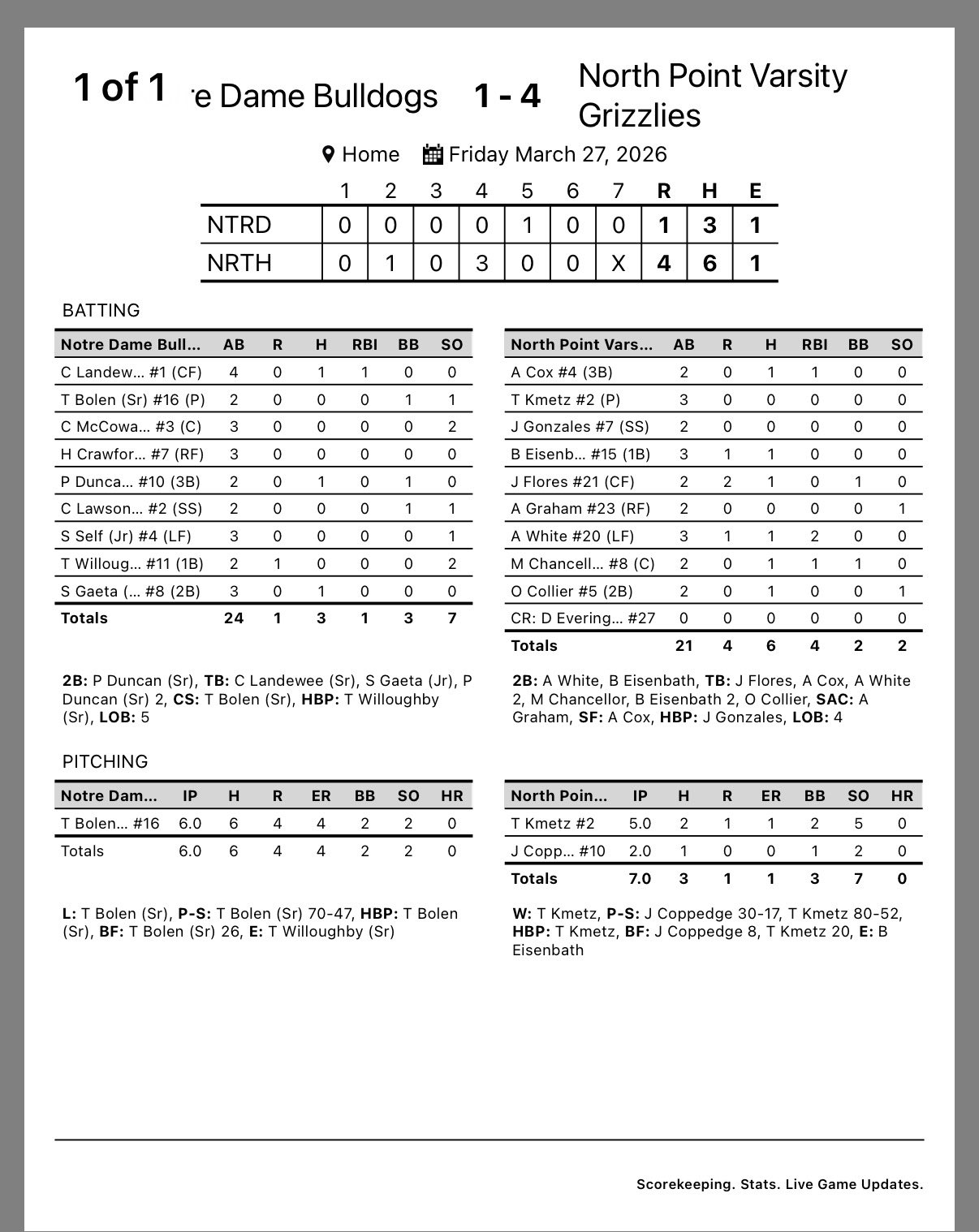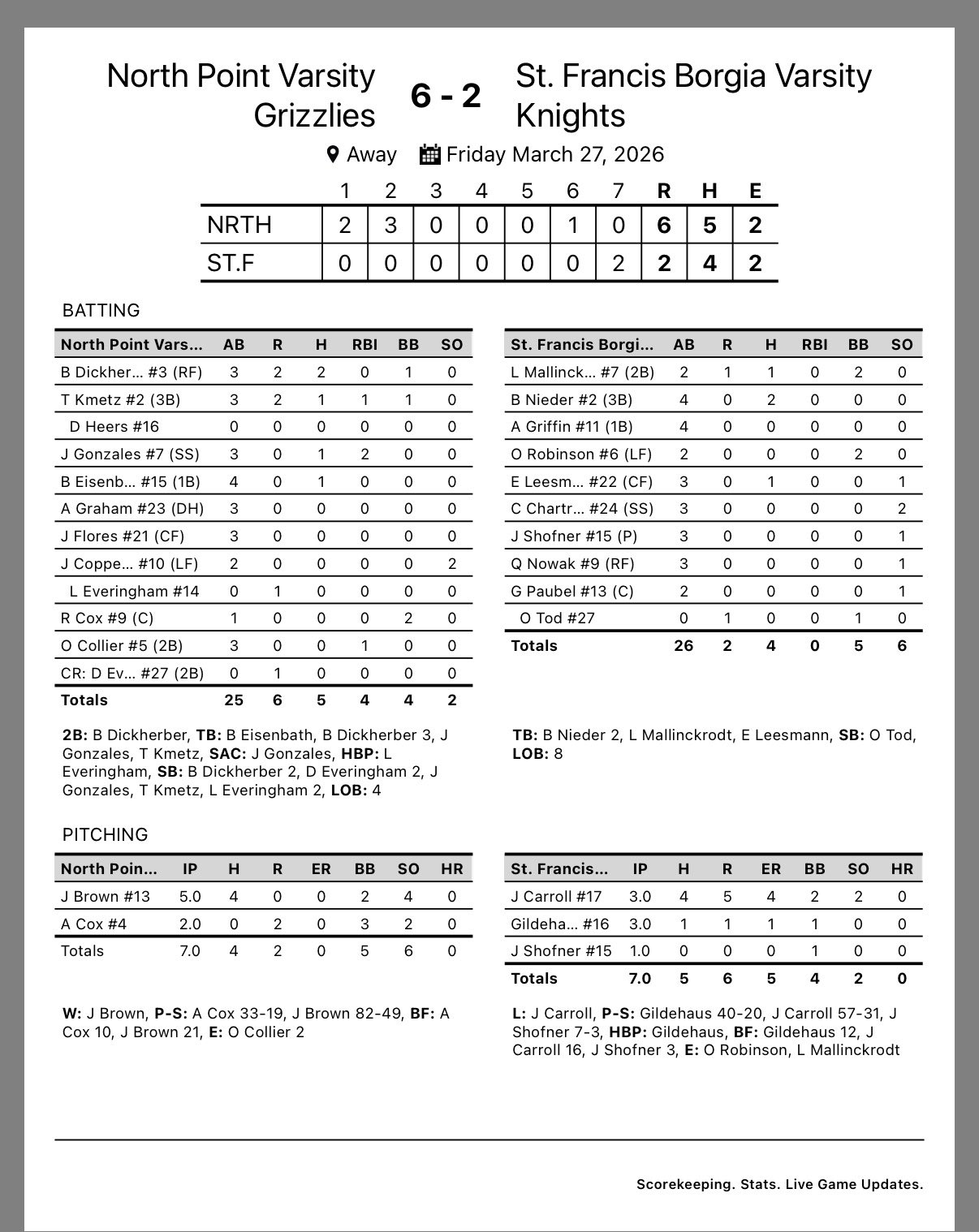 Your Grizzlies sweep the day vs Borgia and Cape Notre Dame! Solid pitching and defense all around, along with some timely hits! Box Scores in the pictures! #ROAR #1%