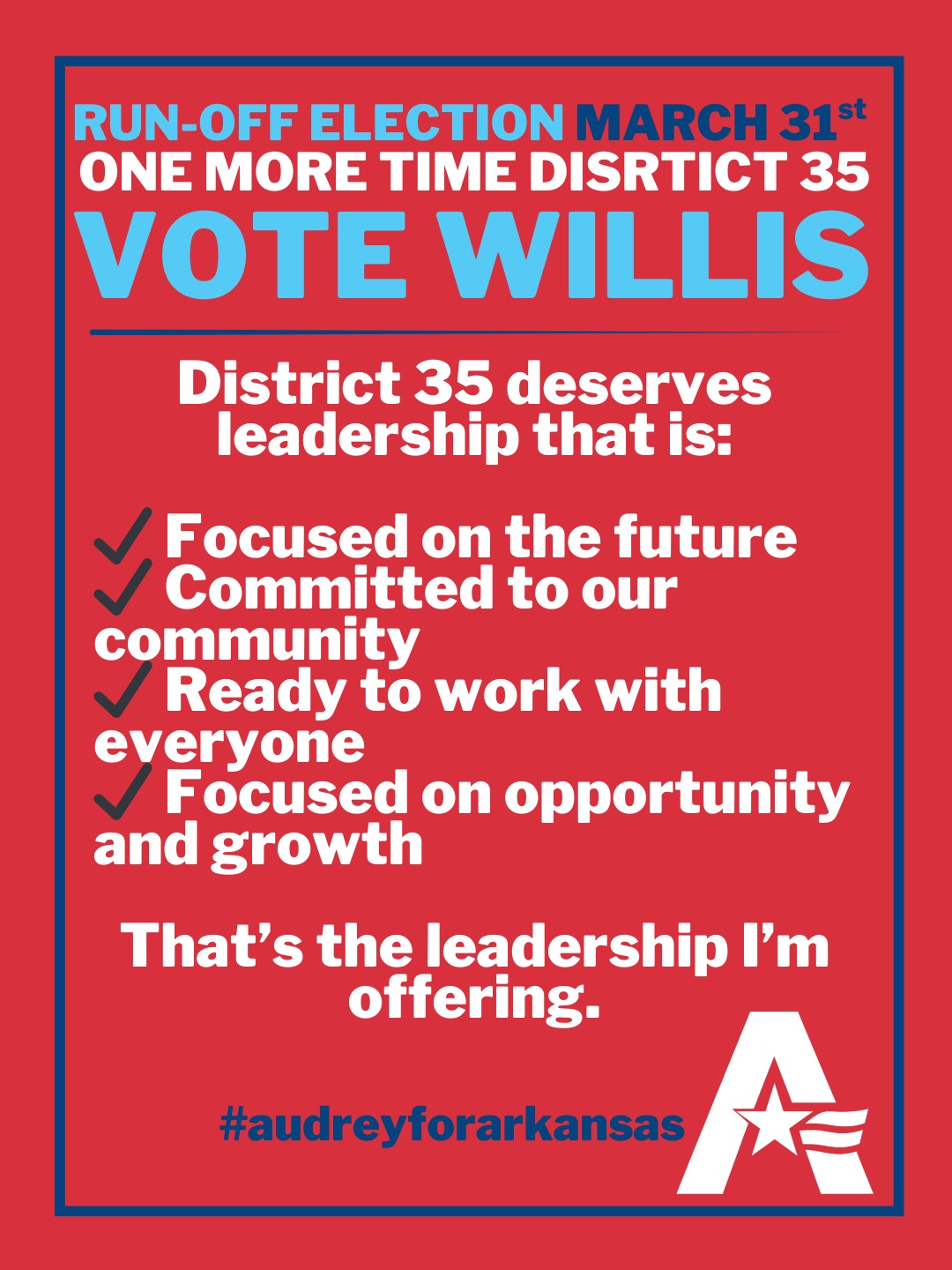 #AudreyForArkansas #becausethefuturecantwait #runoff #district35