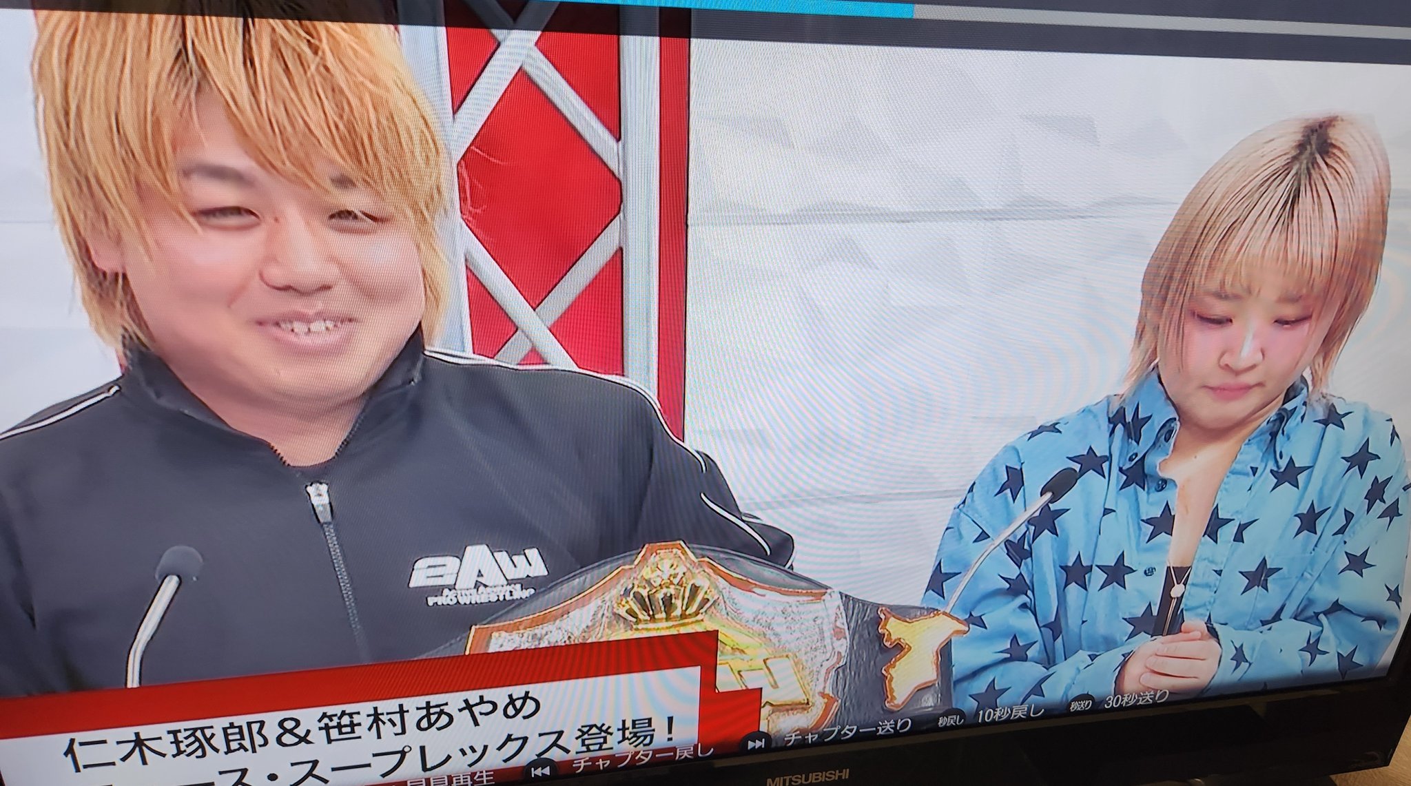 サムライスタッフルーム @samusuta · 19h 3月27日(金) ニューススープレックス虎 #102 ゲスト:仁木琢郎選手、笹村あやめ選手 📺リピート放送日程 3月28日(土) 後0:30 3月28日(土) 後9:00 3月29日(日) 後0:30 3月30日(月) 後1:30 3月30日(月) 後9:00 📱サムライTVを配信で観るなx.gd/6VWQUtt #samuraitUQ サムライTV @samuraiTV · 3d 3/27(金)の虎は、3/29後楽園大会を控える2AWから王者仁木琢郎選手、笹村あやめ選手にお越し頂きました☀️綾斗戦を控える仁木選手へ、あやめ選手からスーパーな助言❗️魔貫光殺砲の要領で綾斗のおへそに指を向ければ👉勝てるぞ❣️皆さんも街でおへそが弱点の綾斗に会ったら試してみてね😉#samuraitv #2ABO 2 2 425