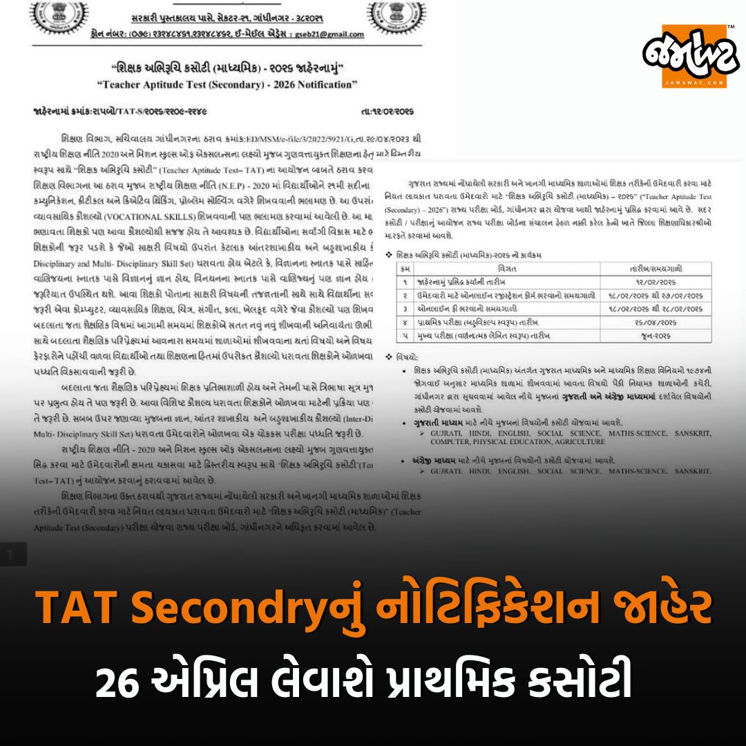 Gujarat | Tat Secondryનું નોટિફિકેશન જાહેર | Jamawat