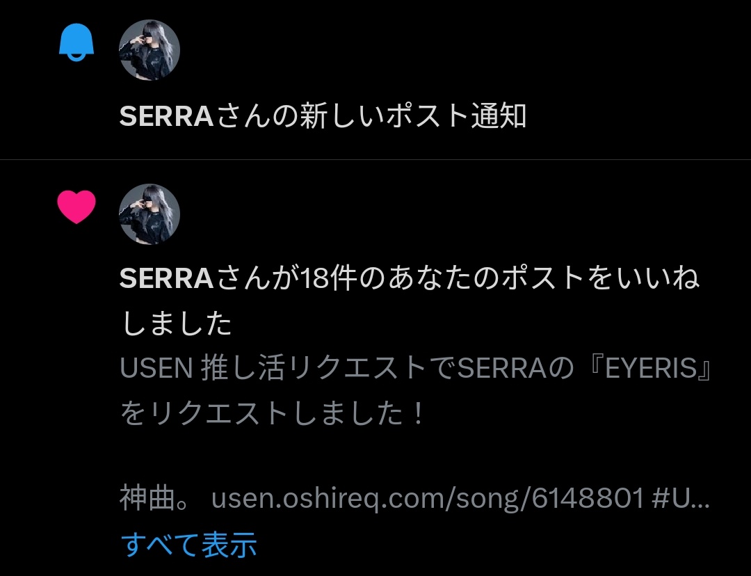 USEN 推し活リクエストでSERRAの楽曲をリクエストしよう! usen.oshireq.com/artist/963748 #USEN推し活リクエスト #推しリク #SERRA #MAJ2026 #MAJ2026_推しリク #MUSICAWARDSJAPAN