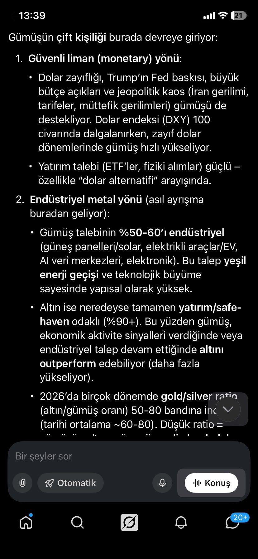 Sonuç olarak gümüş yapısal faktörleri hazır, teknik yapısı oturmuş. Faiz, savaş, petrol, enflasyon, dolar, altın, belirsizlik ne kadar şok varsa hepsini yemiş ama “yeni bir dip” açamamış ve eski trendi temizleyerek yeni bir dalga serisi başlatmaya hazır.